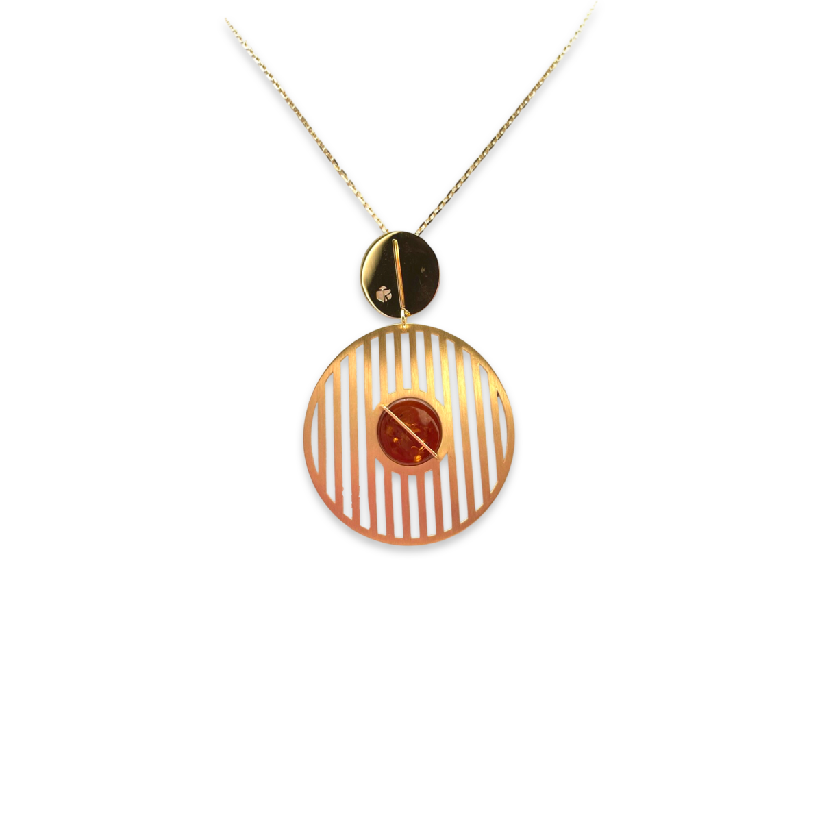 Diese goldbeschichtete Halskette mit rotem Bernstein ist ein schönes und elegantes Schmuckstück, das jedem Outfit einen Hauch von Raffinesse verleiht. Die Halskette verfügt über einen hochwertigen roten Bernstein, der in einem goldbeschichteten Anhänger gefasst ist.
