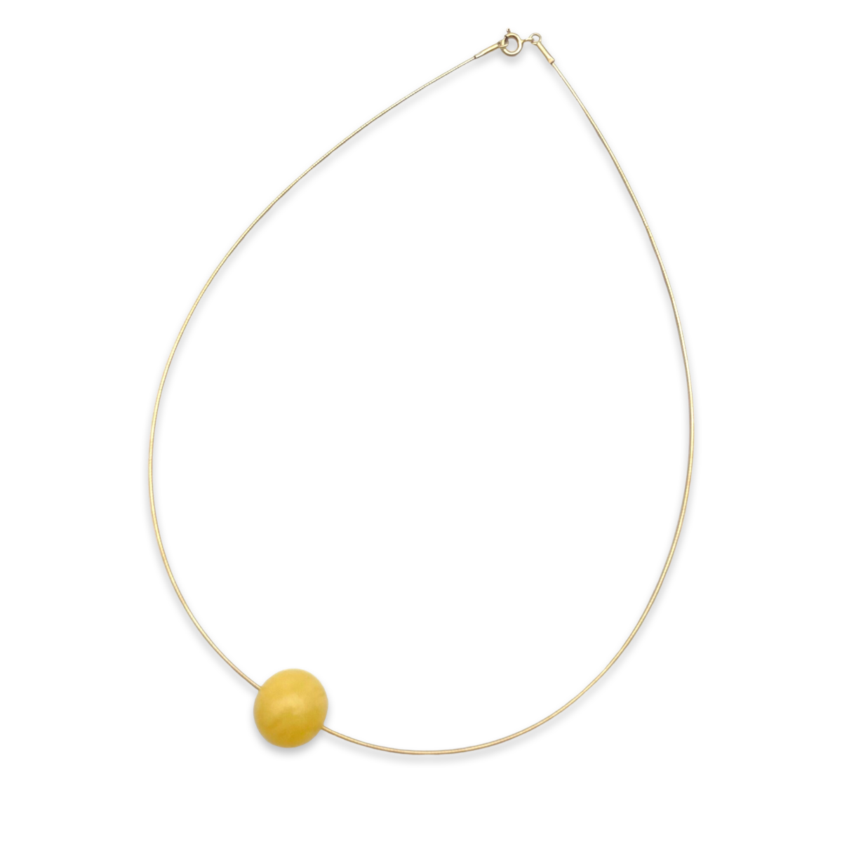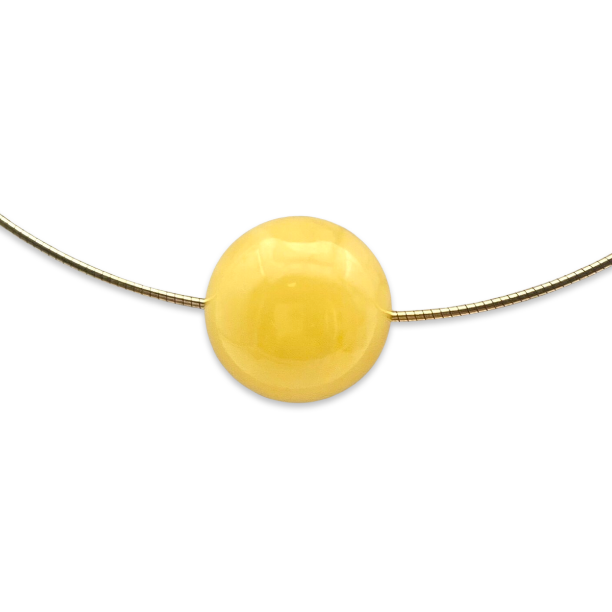 This gold-plated necklace features a beautiful amber ball pendant that adds a touch of elegance to any outfit. The pendant is made of high-quality amber, a fossilized resin that comes in warm colors. The ball is perfectly polished to showcase the natural beauty of the amber.