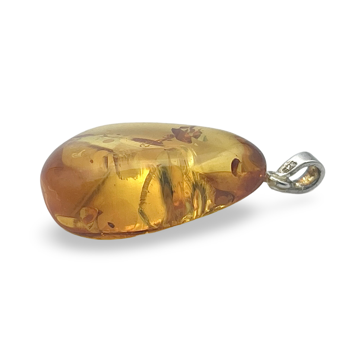 Unser polierter Bernsteinstein-Anhänger ist ein Zeugnis für die natürliche Anziehungskraft von Bernstein, der oft als das „Gold der Ostsee“ bezeichnet wird. Jeder Bernsteinstein wird sorgfältig aufgrund seiner einzigartigen Einschlüsse und reichen Farbtöne ausgewählt und dann fachmännisch poliert, um seine innewohnende Schönheit hervorzuheben. Die glatte Oberfläche und die organische Form des Bernsteinsteins machen jeden Anhänger zu einem echten Unikat. Der Anhänger wird durch ein elegantes silbernes Aufhängeloch ergänzt, das eine langlebige und stilvolle Möglichkeit bietet, den Anhänger an Ihrer Lieblingskette oder -schnur zu befestigen. Der Kontrast zwischen dem warmen Bernstein und dem kühlen Silber verleiht diesem zeitlosen Stück einen Hauch von Raffinesse und Modernität. Bernstein wird seit Jahrhunderten nicht nur wegen seiner Schönheit geschätzt, sondern auch wegen seiner angeblichen heilenden Eigenschaften. Das Tragen dieses Anhängers verbessert nicht nur Ihren Stil, sondern verbindet Sie auch mit der alten Geschichte und der natürlichen Wärme dieses bemerkenswerten Edelsteins. Pflegehinweise: Um die Schönheit und den Glanz Ihres Bernsteinanhängers zu erhalten, reinigen Sie ihn sanft mit einem weichen Tuch und vermeiden Sie den Kontakt mit aggressiven Chemikalien oder extremen Temperaturen. Bewahren Sie ihn an einem kühlen, trockenen Ort auf, wenn Sie ihn nicht tragen, um seine natürlichen Eigenschaften zu bewahren. Perfekt als durchdachtes Geschenk oder persönliche Verwöhnung wird dieser Anhänger sicher zu einer geschätzten Ergänzung jeder Schmucksammlung.