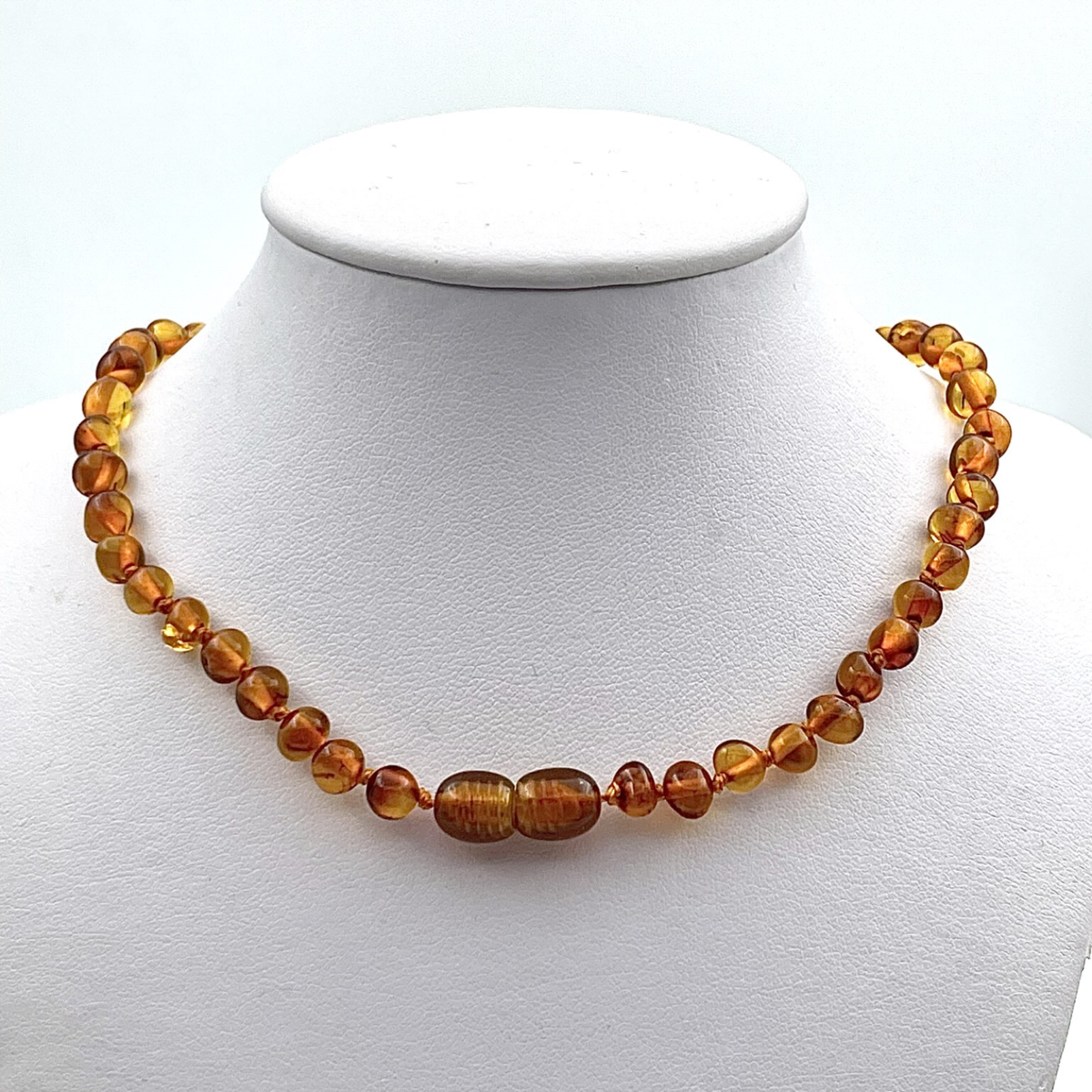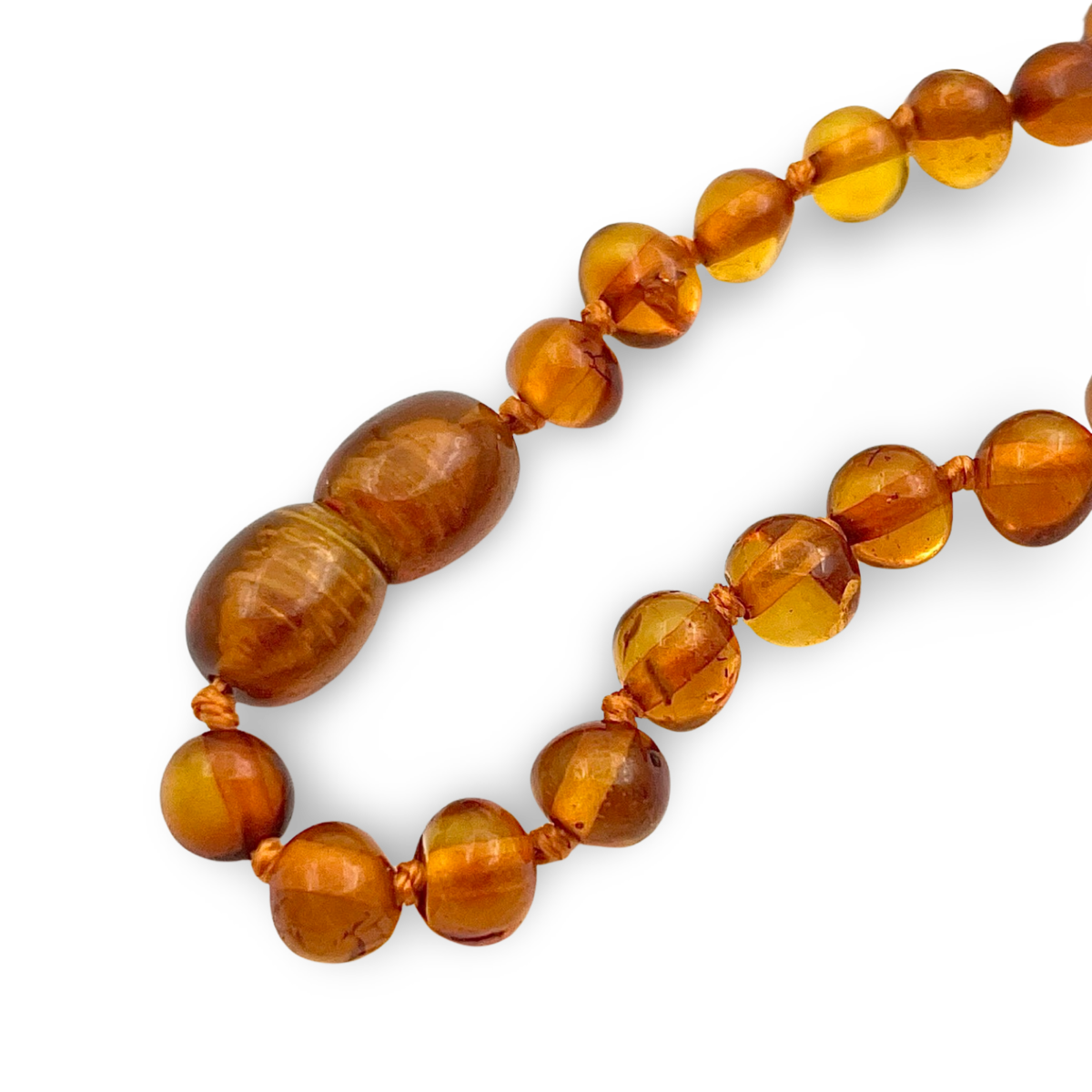 Diese charmante Cognac Bernstein Halskette für Kinder ist ein zartes, aber dennoch robustes Schmuckstück, das natürliche baltische Bernsteinkugeln in einem warmen, honigähnlichen Farbton zeigt. Jede Perle ist einzeln verknotet für zusätzliche Sicherheit, sodass im Falle eines Bruchs der Halskette nur eine Perle verloren geht. Die Halskette wird mit einem zuverlässigen Verschluss gesichert, der für einfache Handhabung und zusätzliche Sicherheit sorgt.
