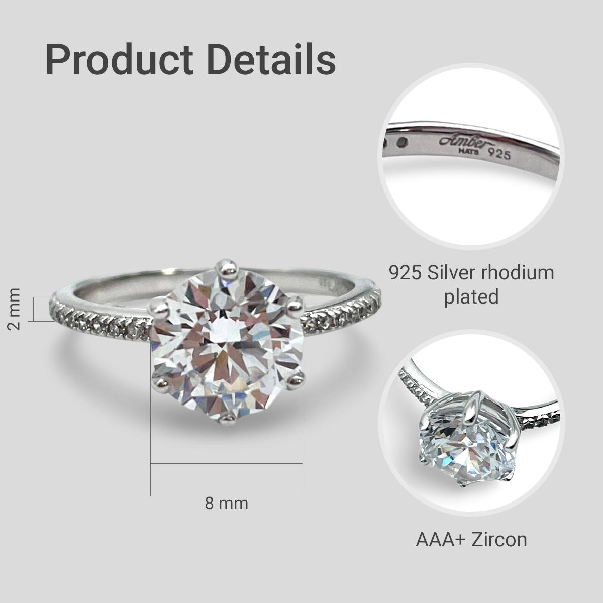 Wählen Sie AmberHats für Qualität, Handwerkskunst und einen Hauch von Romantik. Machen Sie Ihren Verlobungsmoment mit dem Silbernen Classic Round Cut Verlobungsring, wo klassisches Design auf zeitgenössische Eleganz trifft, wirklich unvergesslich.