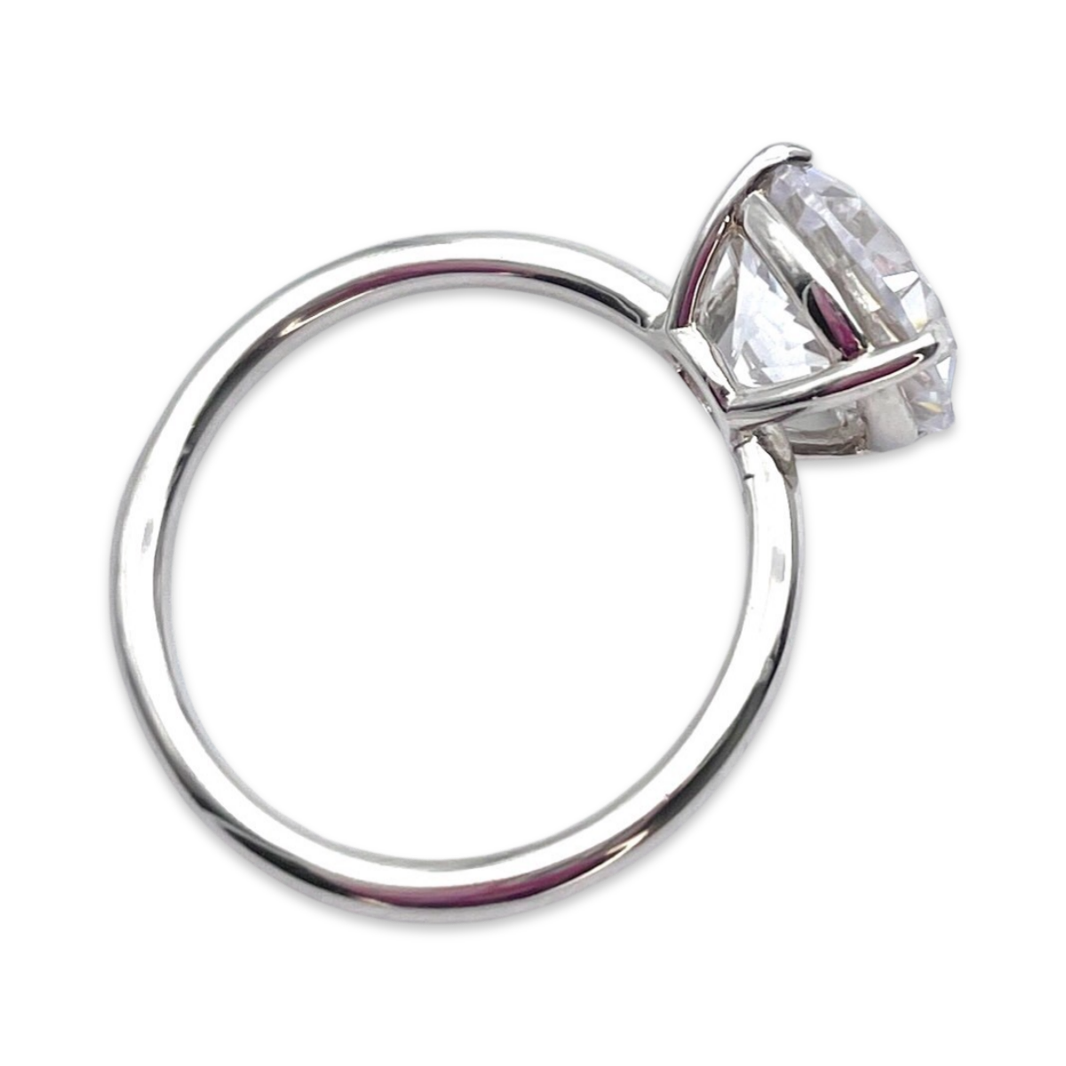 Das Herzstück dieses Rings ist ein rund geschliffener weißer Zirkon, bekannt für seine außergewöhnliche Klarheit und sein feuriges Funkeln. Der sorgfältig facettierte Edelstein fängt das Licht aus jedem Winkel ein und reflektiert es, wodurch ein faszinierendes Brillanzspiel entsteht. Die runde Form des Steins symbolisiert ewige Liebe und macht ihn zur perfekten Wahl für einen Verlobungsring.