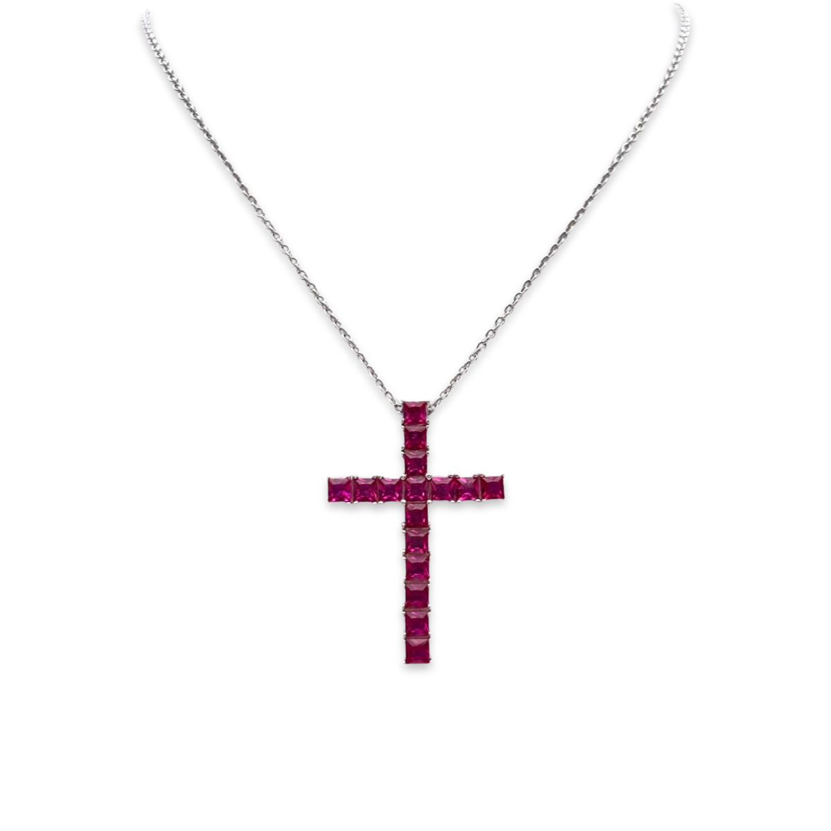Das elegante Silberkreuz Kristina mit Rubin-Zirkonen ist ein atemberaubendes und bedeutungsvolles Schmuckstück, das Eleganz mit einem Hauch von Spiritualität verbindet. Dieses Kreuzanhänger verfügt über ein hochwertiges Silbersdesign, das mit strahlenden Rubin-Zirkonen verziert ist. Die Rubin-Zirkone sind sorgfältig gefasst, um eine faszinierende Darstellung von sattem Rot und funkelnder Brillanz zu schaffen, die dem Kreuz ein lebendiges und auffälliges Element verleiht. Der Silberanhänger ist meisterhaft mit filigranen Details gefertigt, die das handwerkliche Können und die Liebe zum Detail zeigen. Das elegante Silberkreuz Kristina mit Rubin-Zirkonen ist nicht nur ein schönes Accessoire, sondern auch ein Symbol für Glauben und Hingabe. Ob als persönliches Statement oder als bedeutungsvolles Geschenk getragen, wird es wegen seines exquisiten Designs und seiner symbolischen Bedeutung sicher geschätzt und bewundert.
