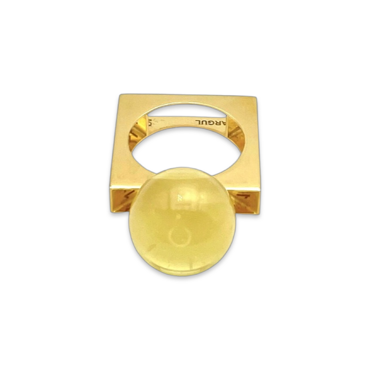 Das Ringband ist ebenfalls goldbeschichtet und hat eine helle, polierte Oberfläche, die das Design des Bernsteins ergänzt.