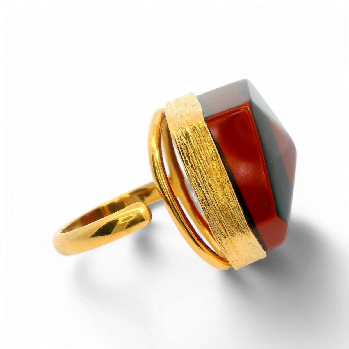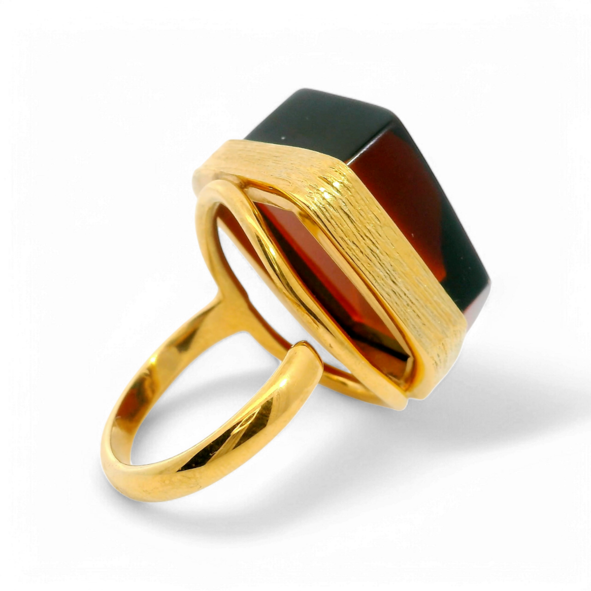 Elegant und kühn, ist dieser vergoldete 925er Sterlingsilberring mit dunkelrotem Bernstein ein auffälliges Accessoire, das klassisches Design mit reicher, natürlicher Schönheit verbindet. Die tiefen, warmen Töne des dunkelroten Bernsteins strahlen zeitlosen Charme aus, perfekt akzentuiert durch die glänzende Vergoldung.