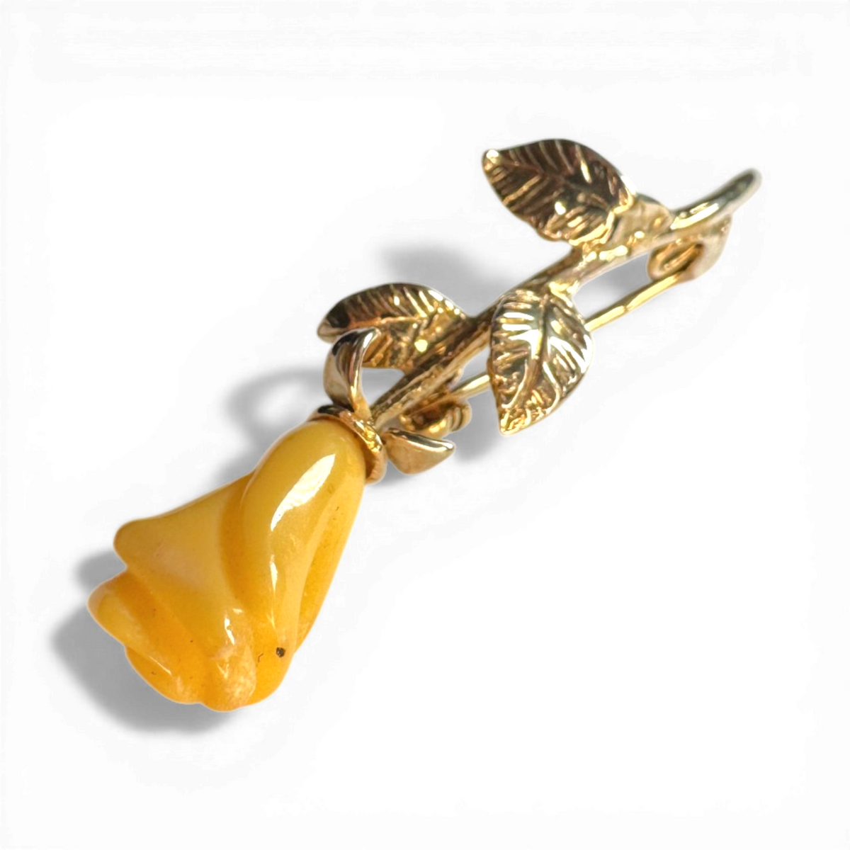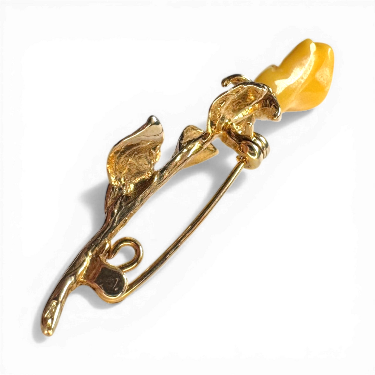 Gold-Plated Silver Brooch with Yellow Amber Rose