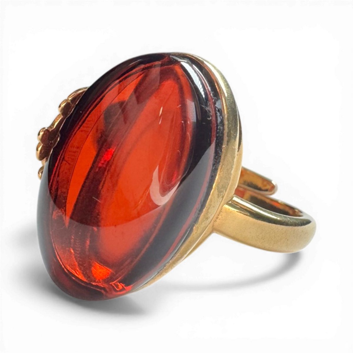 Gold-Plated Silver Ring with Cherry Amber (Adjustable)