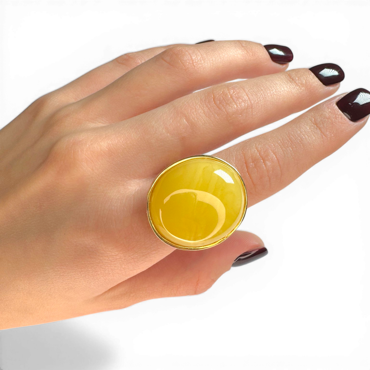 Gold-Plated Silver Ring with Large Yellow Amber (Adjustable)