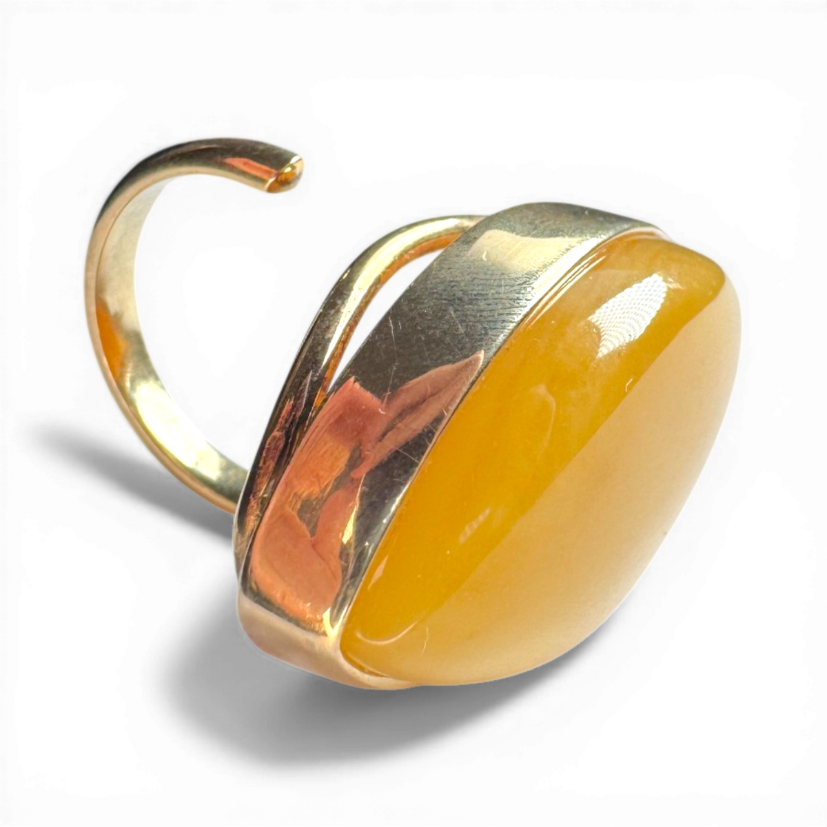 Gold-Plated Silver Ring with Yellow Amber (Adjustable)