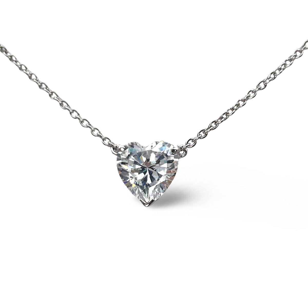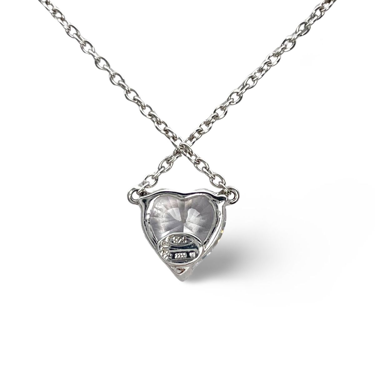 2. Herzförmiger Anhänger: Der herzförmige Anhänger ist der Mittelpunkt der Halskette und symbolisiert Liebe, Zuneigung und Romantik. Der Anhänger ist mit Diamantsimulanten verziert, bei denen es sich um im Labor hergestellte Steine handelt, die sorgfältig wegen ihres Funkelns und Feuers ausgewählt wurden. Diese Simulanten ahmen das Funkeln und die Klarheit echter Diamanten sehr genau nach.