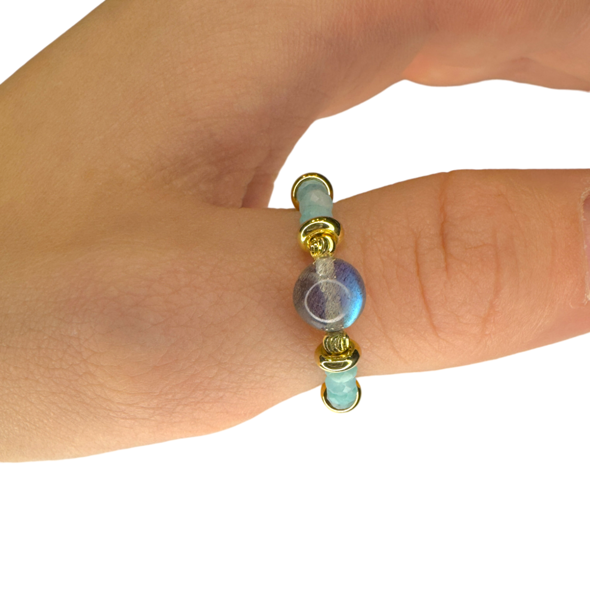 Labradorit-, Amazonit-Ring