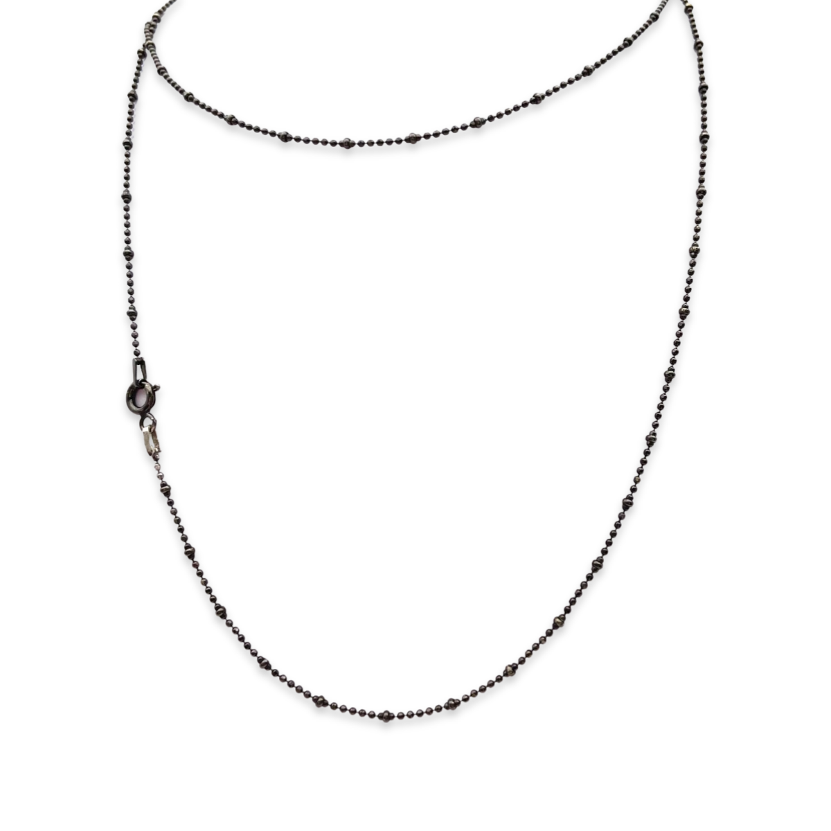 The necklace is designed to be worn long, measuring approximately the perfect length to complement any outfit. The simplicity of the design makes it a versatile accessory that can be worn with a variety of different styles and outfits, whether you're dressing up for a special occasion or simply want to add some sparkle to your everyday look.