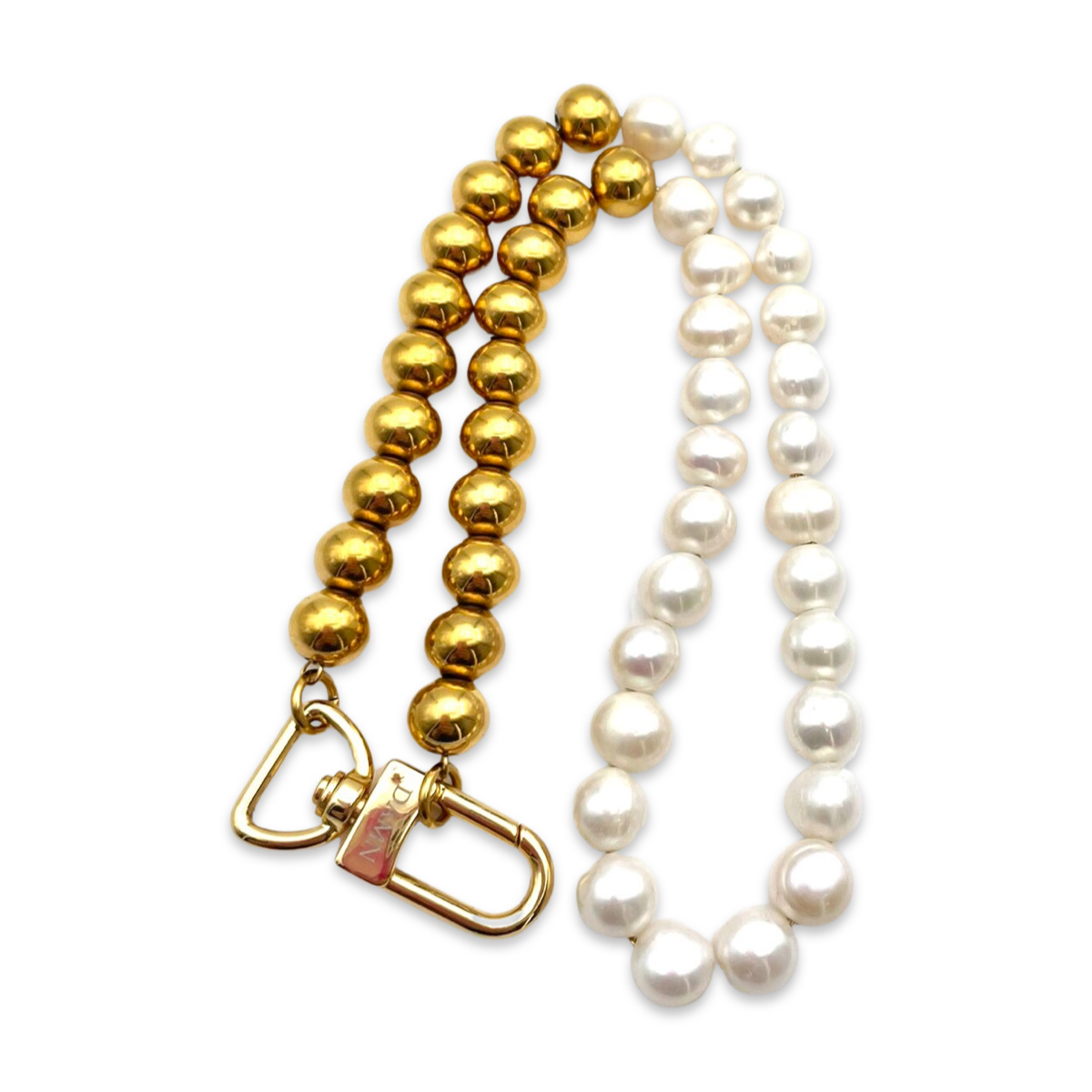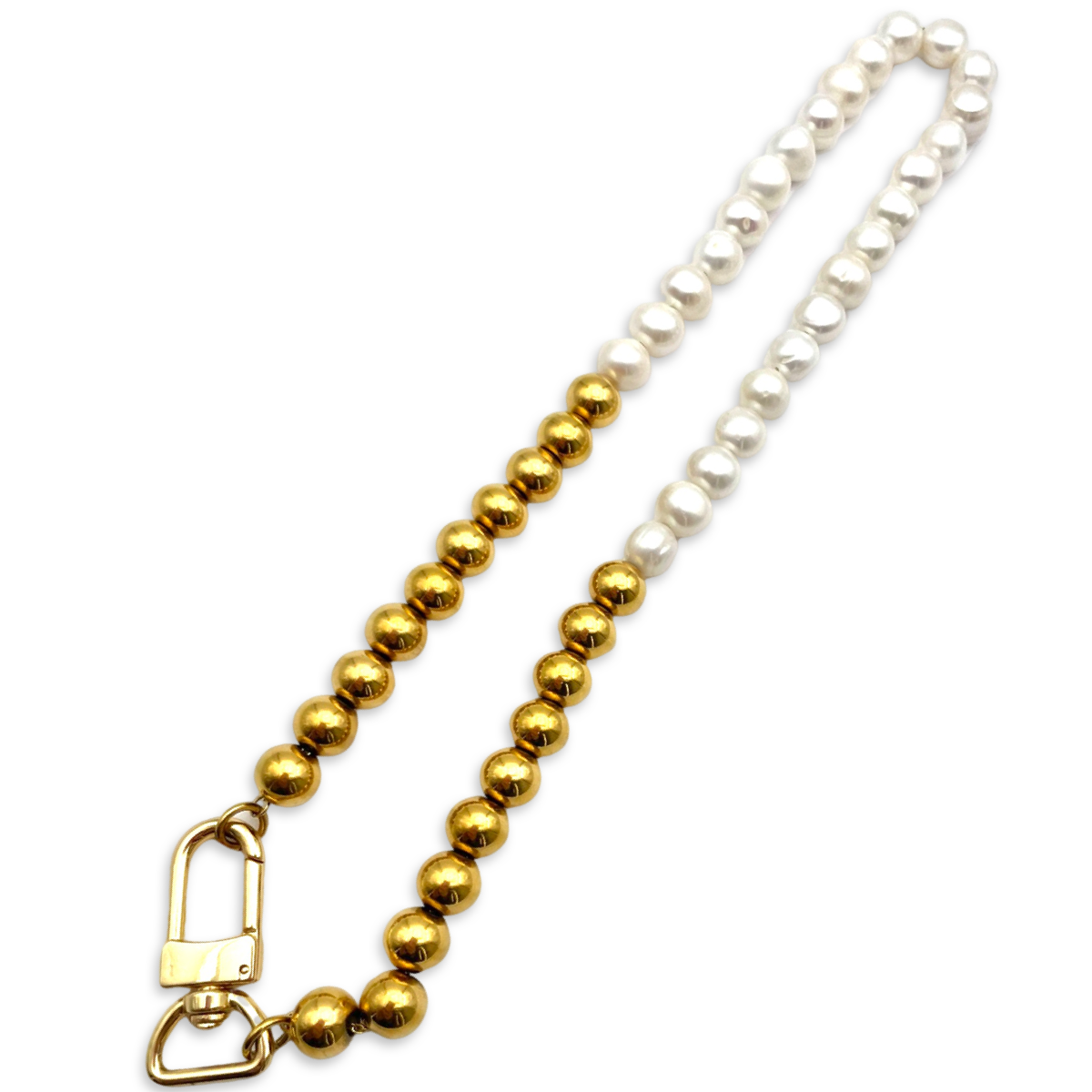 This necklace from Amber Hats features a stylish combination of gold-plated balls 24k and pearls. The beads are strung together on a delicate chain, creating a sophisticated and elegant look. The necklace is crafted from high-quality materials and is designed to be both durable and long-lasting. It is perfect for adding a touch of glamour to any outfit, and can be worn for both formal and casual occasions. Whether you're dressing up for a night out or simply looking to elevate your everyday style, this pearl beaded chain necklace is a great choice.