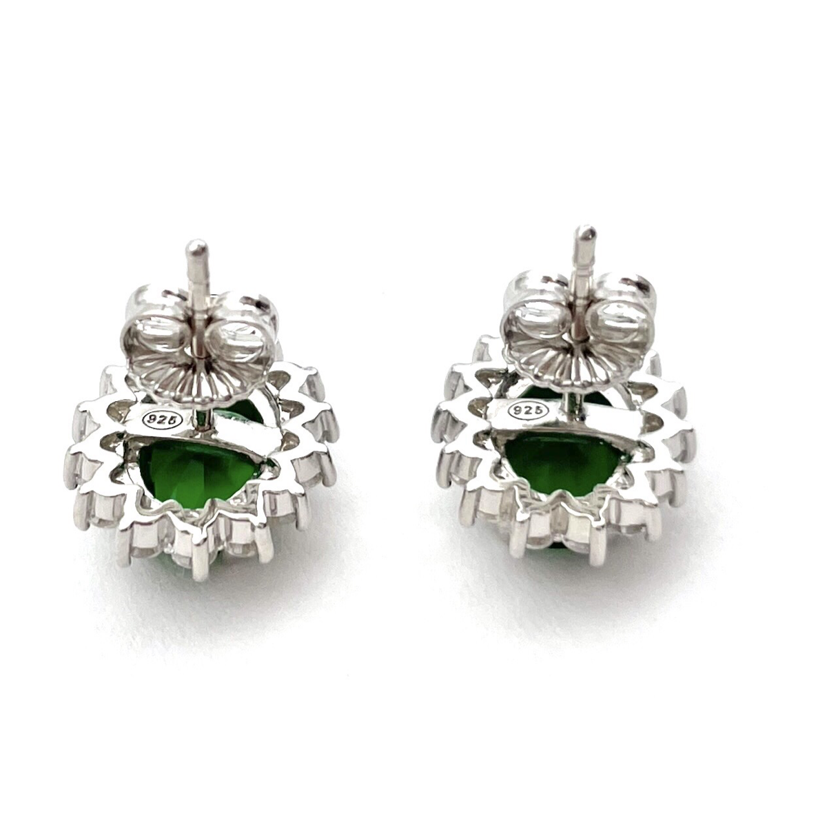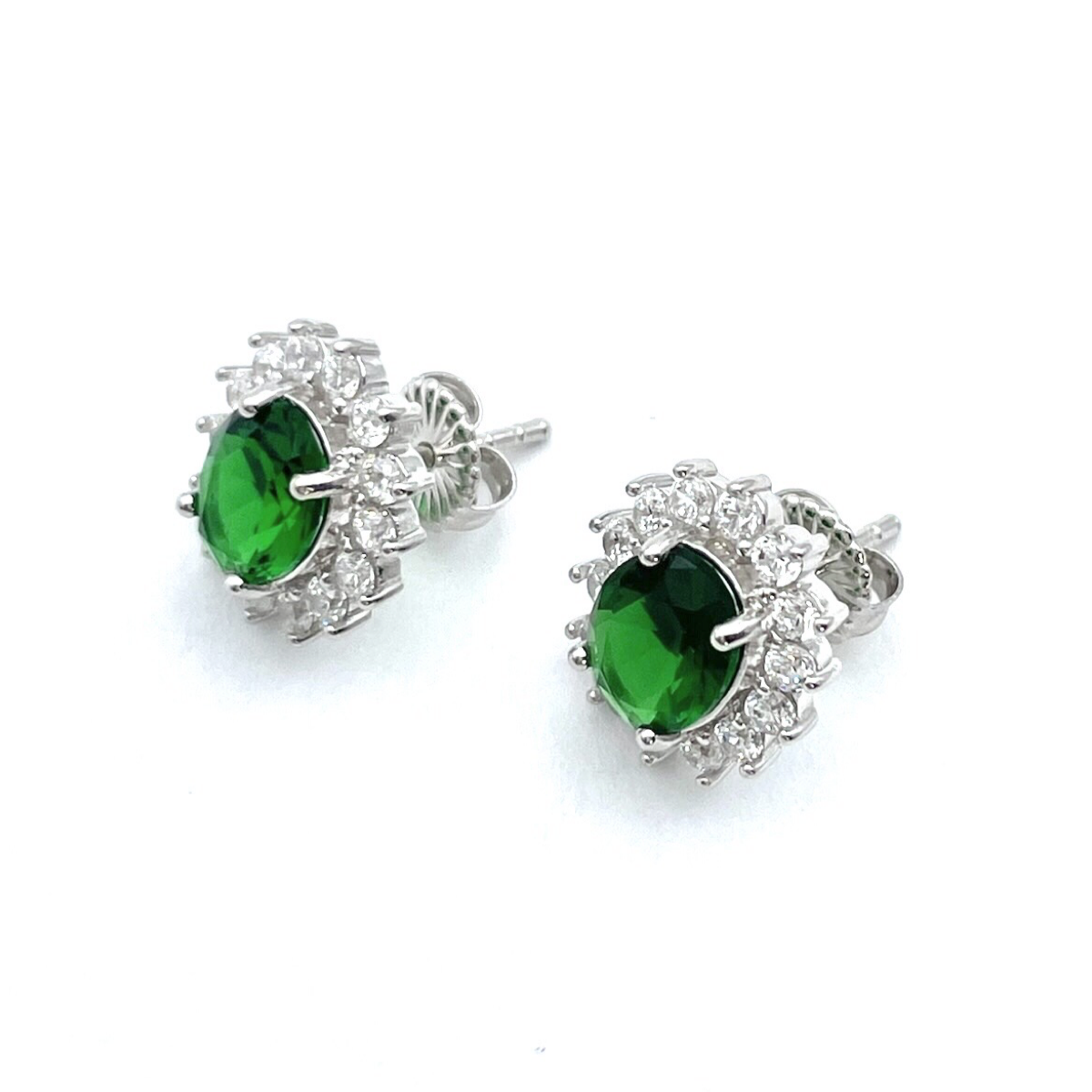 Das Steckdesign dieser Ohrringe sorgt für Komfort und Sicherheit. Sie liegen elegant an Ihren Ohrläppchen an, rahmen Ihr Gesicht ein und lenken die Aufmerksamkeit auf Ihre Gesichtszüge. Die Kombination aus der silbernen Fassung und den grünen Zirkon-Steinen schafft ein harmonisches Gleichgewicht von Farbe und Glanz.