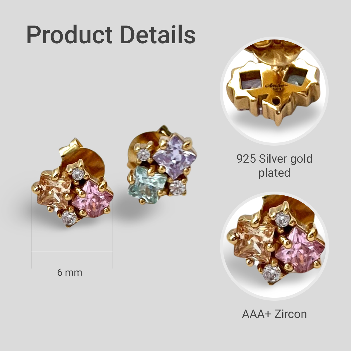 Einführung der vergoldeten Silberohrringe mit mehrfarbigen Zirkonen von AmberHats – ein strahlender und lebendiger Ausdruck von Raffinesse und Stil. Diese exquisiten Ohrringe sind darauf ausgelegt, mit einer schillernden Farbpalette Aufmerksamkeit zu erregen und Ihrem Look einen Hauch verspielter Eleganz zu verleihen. Hergestellt aus Sterlingsilber 925 und zart mit strahlendem Gold plattiert, verfügt jeder Ohrring über eine sorgfältig arrangierte Sammlung mehrfarbiger Zirkone. Die akribische Fassung zeigt eine harmonische Mischung von Farbtönen und erzeugt eine beeindruckende visuelle Wirkung, die sowohl zu legerer als auch zu formeller Kleidung passt. Das leichte Design sorgt für Komfort, sodass Sie diese Ohrringe den ganzen Tag oder Abend tragen können. Die sicheren Verschlüsse bieten Sicherheit und gewährleisten, dass Sie sich mit Selbstvertrauen und Anmut bewegen können, während Sie dieses auffällige Accessoire präsentieren. Perfekt für diejenigen, die Vielseitigkeit schätzen und gerne auffallen, sind die vergoldeten Silberohrringe mit mehrfarbigen Zirkonen von AmberHats eine wunderbare Ergänzung jeder Schmucksammlung. Ob Sie an einer besonderen Veranstaltung teilnehmen oder einfach Ihrem Alltagsoutfit einen Farbtupfer verleihen möchten – diese Ohrringe verbinden mühelos modernen Flair mit zeitloser Eleganz. Verleihen Sie Ihrem Stil mit dem freudigen Farbenspiel und der exquisiten Handwerkskunst dieser Ohrringe neuen Glanz. Wählen Sie AmberHats für Qualität, Stil und einen Hauch lebendiger Raffinesse.
