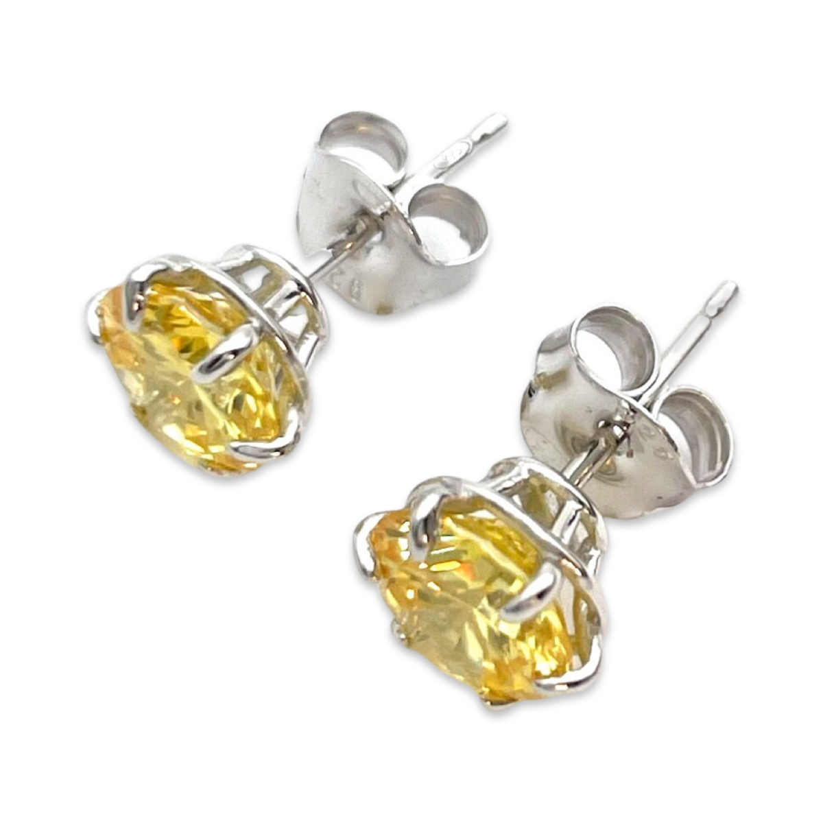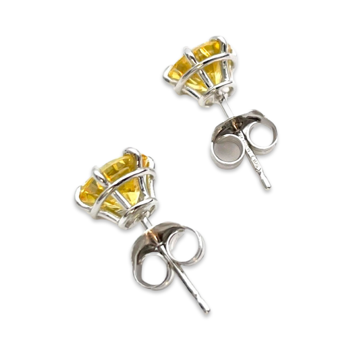 3. Gelbe Zirkon-Akzente: Diese Stecker sind mit lebendigen gelben Zirkon-Akzenten verziert, die einen Farbtupfer bieten. Gelber Zirkon verleiht den Ohrringen ein fröhliches und lebhaftes Element.