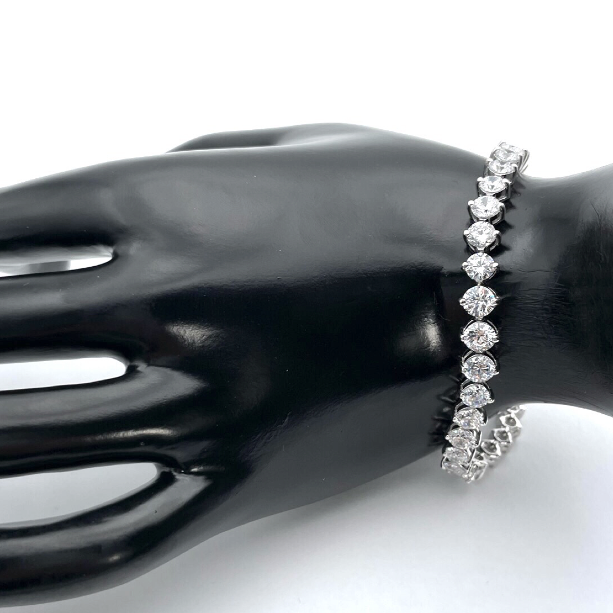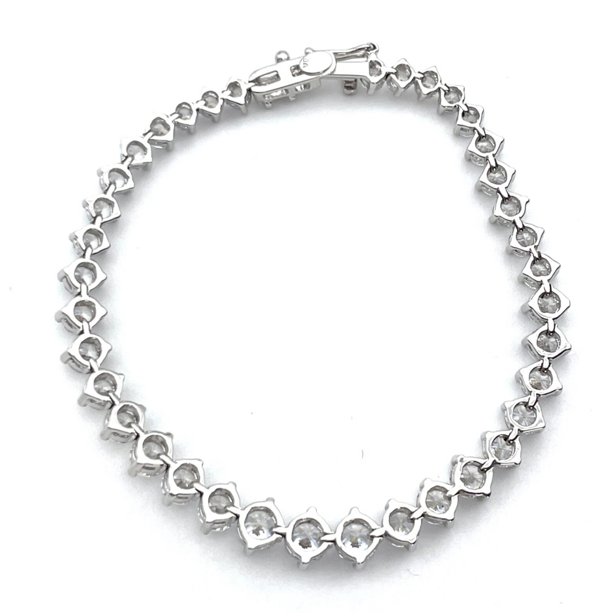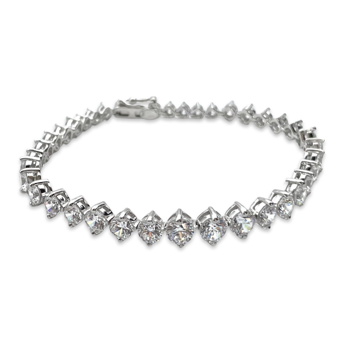 Die in diesem Imitationsarmband verwendeten Zirkonia werden wegen ihres Glanzes und Feuers ausgewählt, wodurch ein Funkeln entsteht, das die Schönheit echter Diamanten nachahmt. Die Silberfassung ergänzt die Steine und verleiht dem Stück einen Hauch von Raffinesse und Luxus.