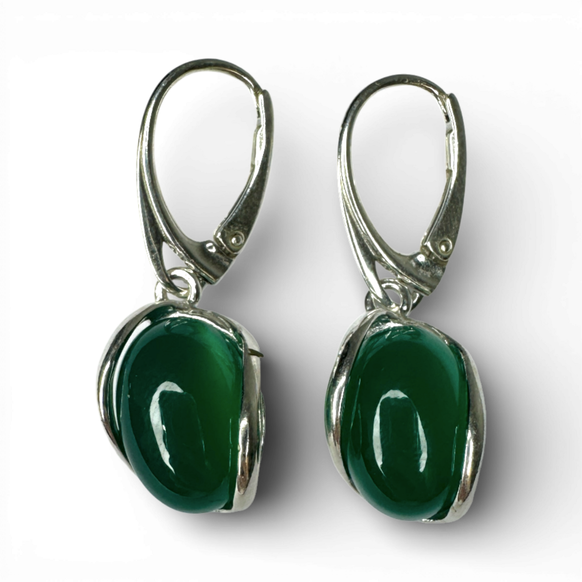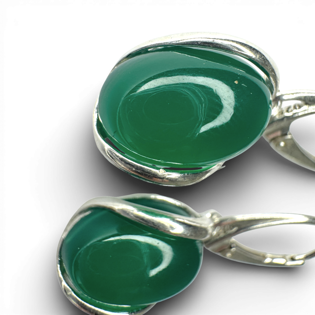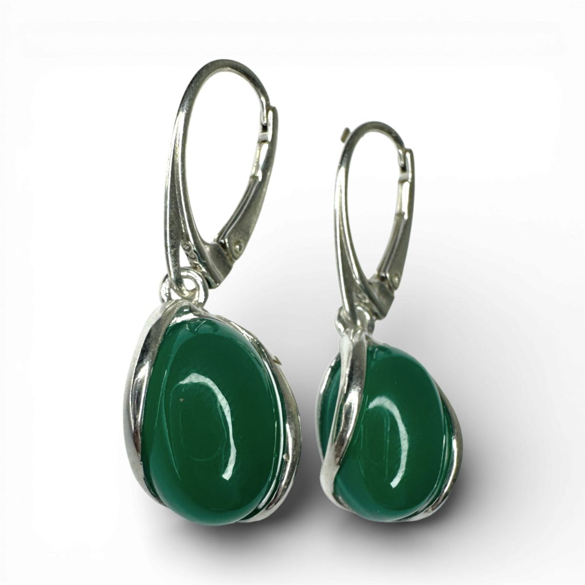 Silberne und grüne Achat-Ohrringe