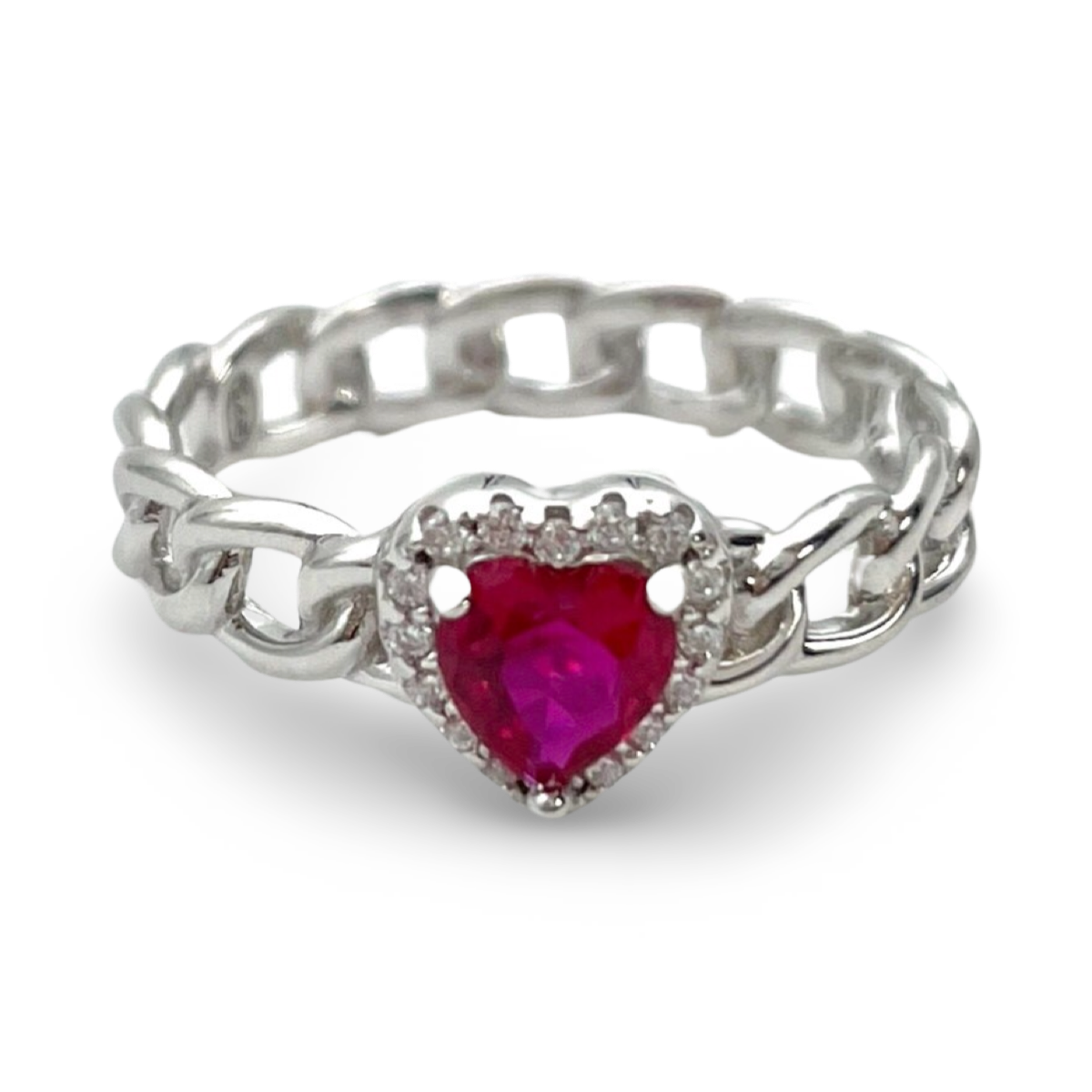 Erhöhen Sie Ihren Stil mit unserem silbernen geflochtenen Ring, verziert mit einem herzförmigen roten Zirkon. Dieser sorgfältig gefertigte Ring verbindet nahtlos die zeitlose Schönheit klassischen Designs mit einem Hauch leidenschaftlicher Eleganz. Der Ring verfügt über ein Band, das kunstvoll aus hochwertigem Sterlingsilber geflochten ist und Einheit und Stärke symbolisiert. Im Zentrum fängt ein brillanter herzförmiger roter Zirkon die Essenz von Liebe und feuriger Leidenschaft ein. Der tiefrote Farbton des Zirkons symbolisiert tiefe Zuneigung und intensive Emotionen. Das Silberband ist nicht nur optisch ansprechend, sondern auch langlebig und verspricht einen langanhaltenden Glanz. Der herzförmige Zirkon ist sicher gefasst, sodass seine Brillanz die Zeit überdauert. Dieser Ring ist die perfekte Verkörperung von Liebe und Leidenschaft. Ob zu einem besonderen Anlass oder um Ihre Zuneigung an jedem Tag auszudrücken – der silberne geflochtene Ring mit herzförmigem rotem Zirkon ist die ideale Wahl. Feiern Sie Ihre Liebe mit dem zeitlosen Charme dieses exquisiten Rings und lassen Sie den herzförmigen roten Zirkon Ihre Zuneigung und feurige Hingabe symbolisieren.