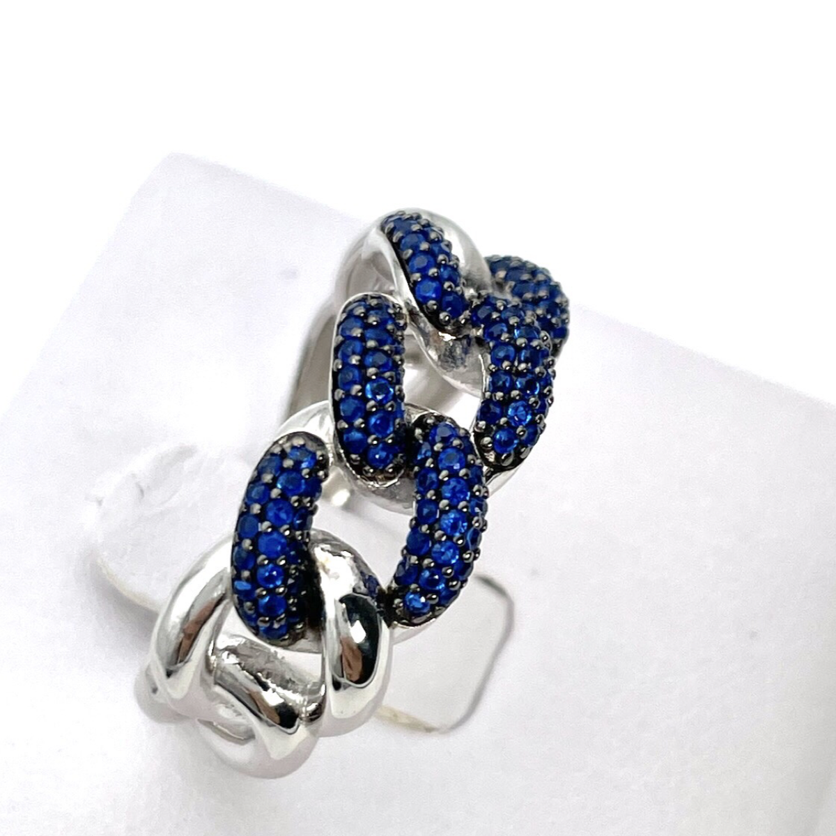 Erhöhen Sie Ihren Stil mit unserem silbernen geflochtenen Ring, verziert mit bezaubernden blauen Kristallen. Dieser sorgfältig gefertigte Ring verbindet nahtlos den zeitlosen Charme klassischen Designs mit einem modernen Twist.