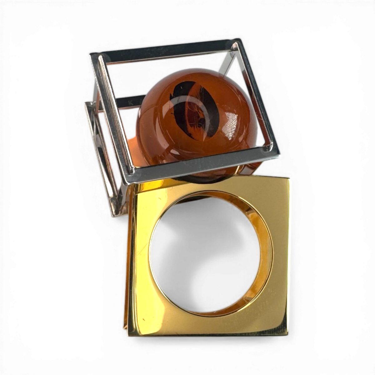 Silver gold plated amber ring