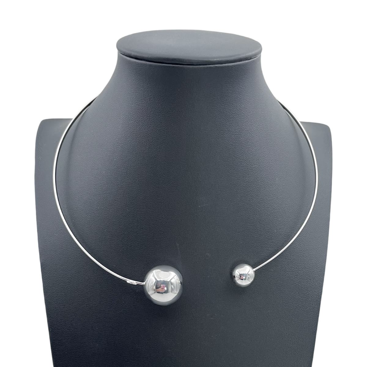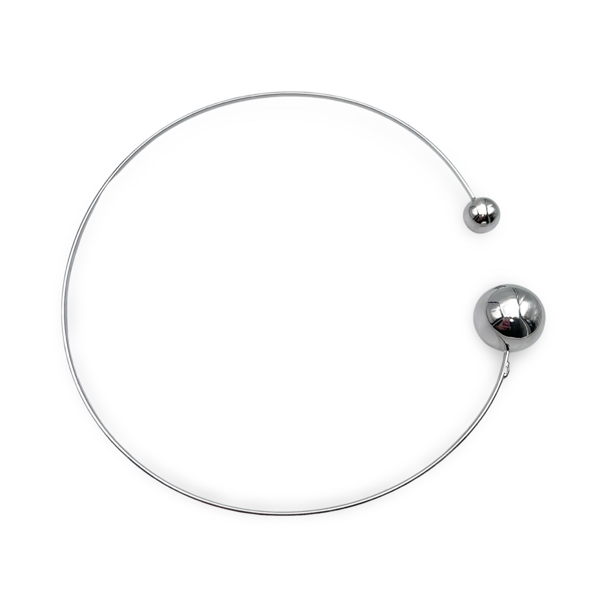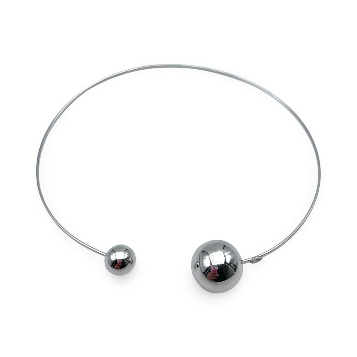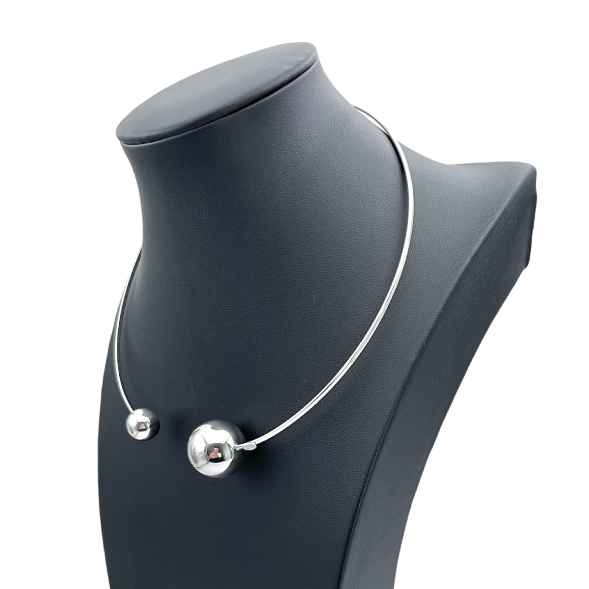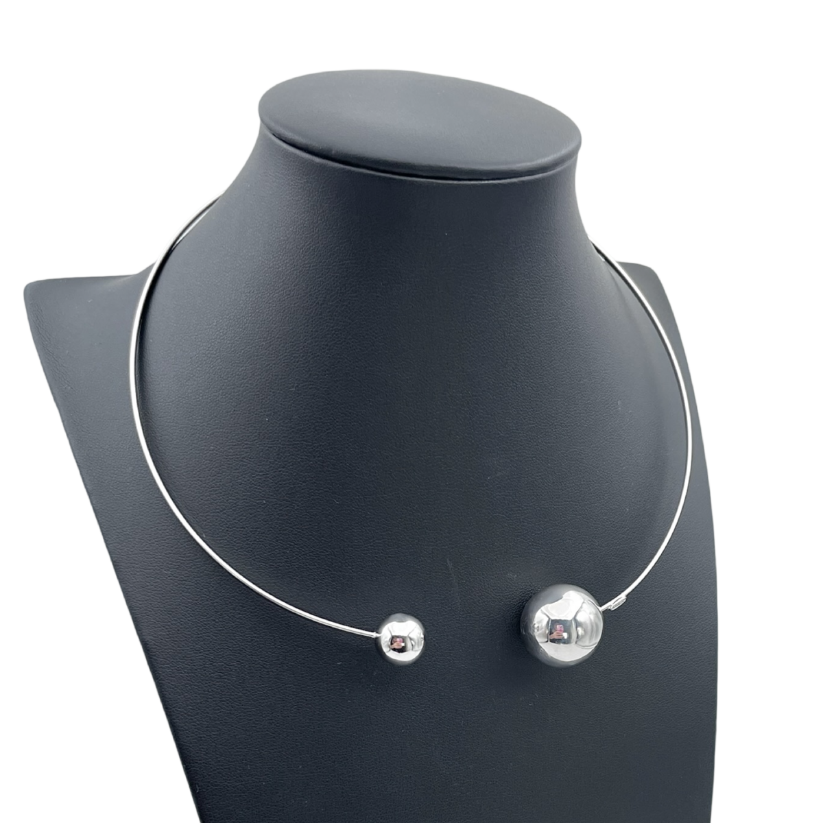 Diese Silberkugel-Halskette strahlt zurückhaltende Eleganz mit ihrem polierten Sterlingsilber-Design aus. Die Länge von 41 cm bietet eine schmeichelhafte, eng anliegende Optik, die den Hals betont. Die glatten Silberkugeln schaffen ein elegantes und anspruchsvolles Erscheinungsbild, wodurch sie ein perfektes Einzelstück oder ein unverzichtbares Layering-Accessoire ist.