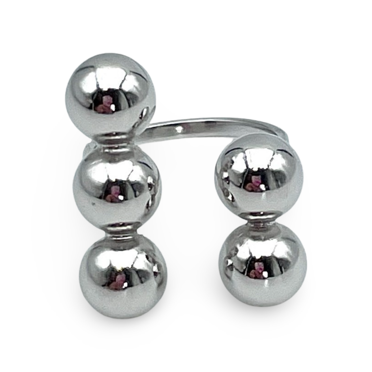 Der Silberring „Balls“ bietet eine Kombination aus Schlichtheit und Eleganz mit seinem modernen Design. Mit glatten und polierten Sterlingsilberkugeln strahlt dieser Ring Raffinesse aus und bewahrt gleichzeitig eine minimalistische Ästhetik. Das verstellbare Einheitsgrößendesign sorgt für eine perfekte Passform an jedem Finger und macht ihn sowohl praktisch als auch stilvoll.