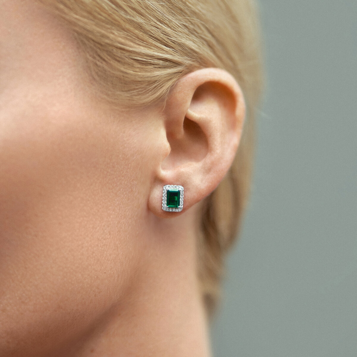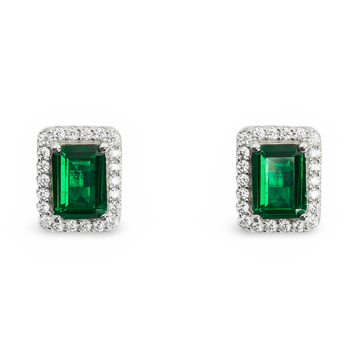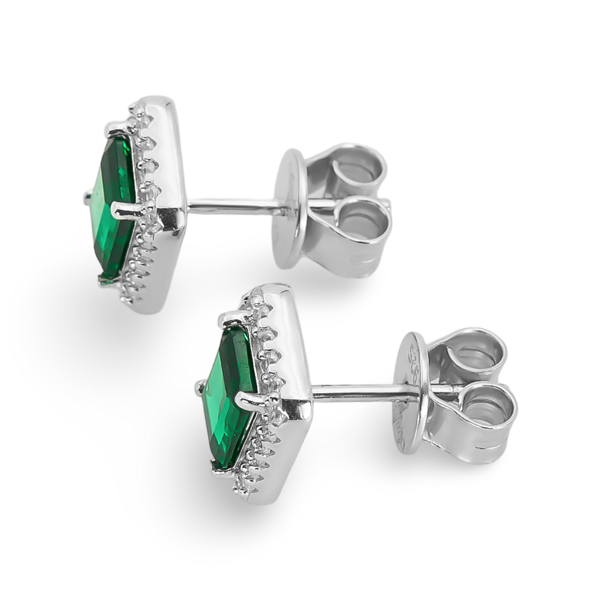 Entdecken Sie Eleganz mit diesen Silber 925 Ohrsteckern, verziert mit schimmernden weißen Zirkonen und hervorgehoben durch einen auffälligen grünen Zirkon in der Mitte. Sorgfältig gefertigt aus hochwertigem Sterlingsilber, bieten diese Ohrringe eine moderne Interpretation des klassischen Designs. Die klaren Linien der rechteckigen Form verstärken die Brillanz der Steine und machen sie perfekt für den Alltag sowie besondere Anlässe. Ihr vielseitiger Stil ermöglicht es, jedes Outfit zu ergänzen und Ihrem Ensemble einen Hauch von Raffinesse und Farbe zu verleihen.