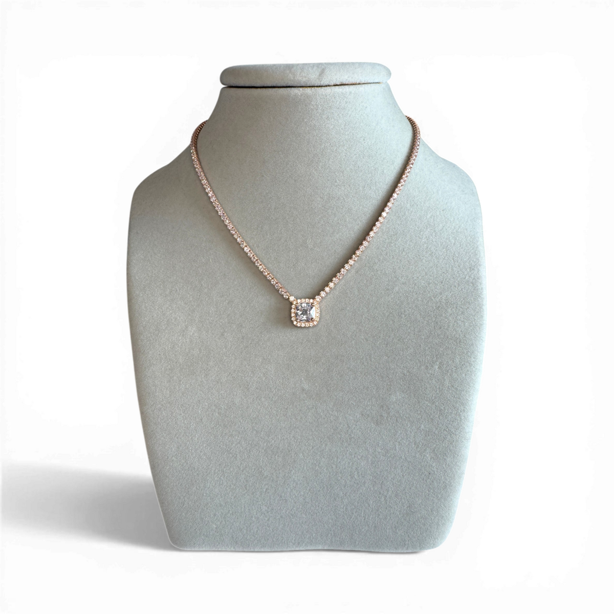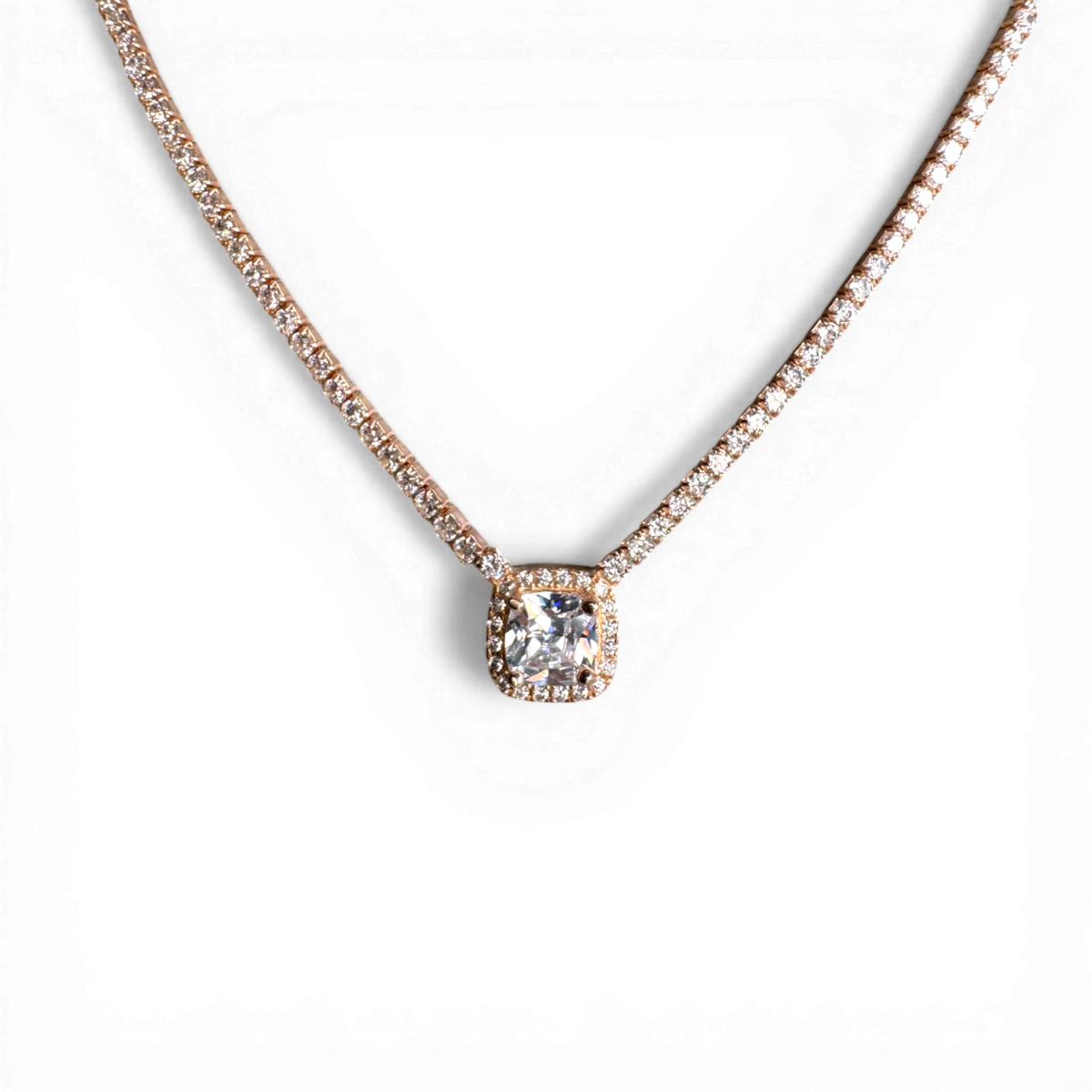 Tennis-Halskette mit Knopf-Anhänger und weißem Zirkon