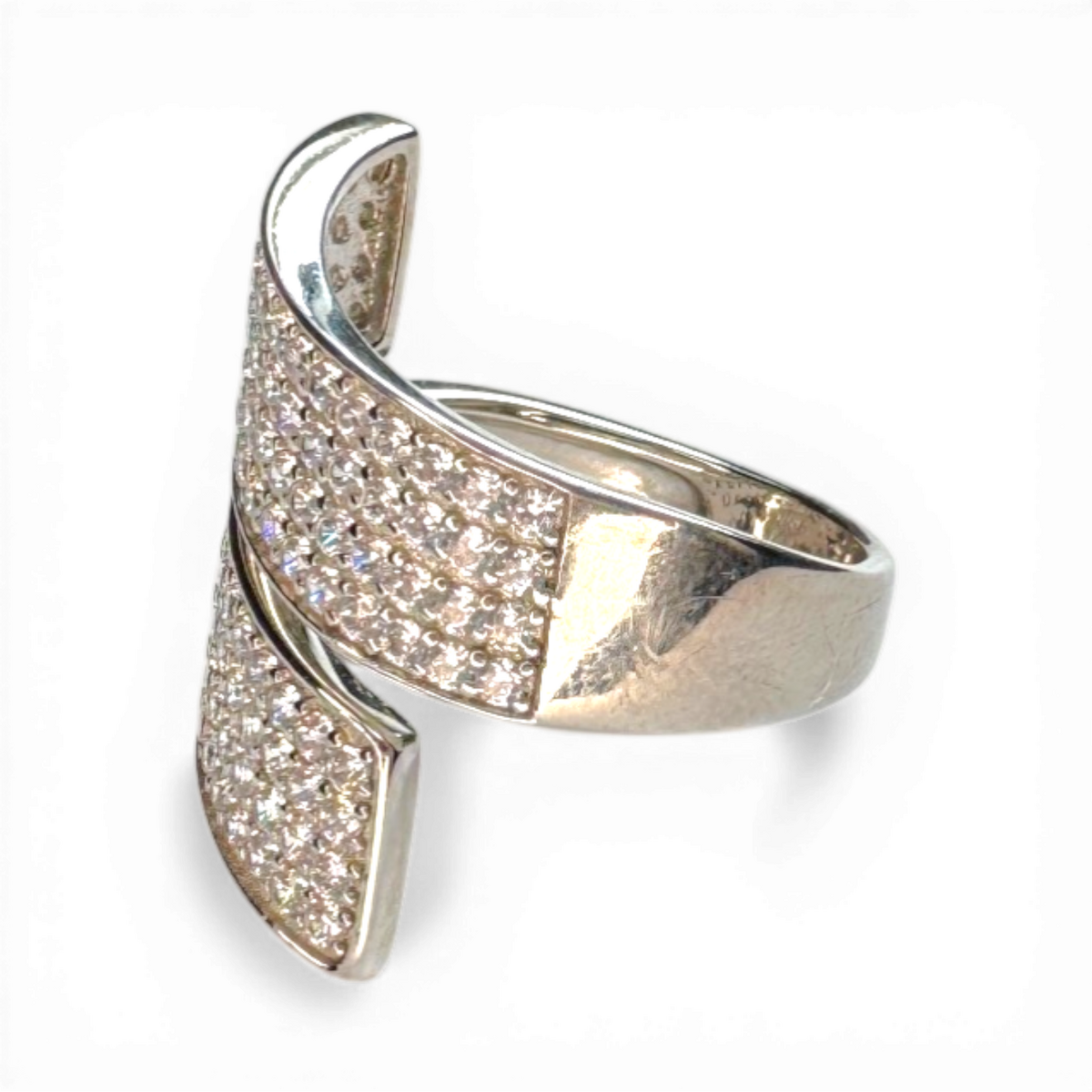 A contrarier ring in sterling silver 925, set with luminous white zirconia. Clean, elegant, and versatile.