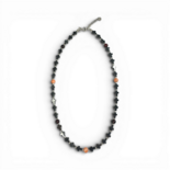 Halskette mit rosa Koralle, Bernstein Kirsche und Hämatit