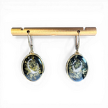 Gold-Plated Silver Earrings with Green Amber & Cat Design