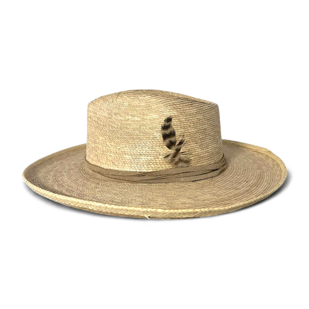 Sombrero de Palma Fina Pencil Brim con Banda de Gamuza y Pluma