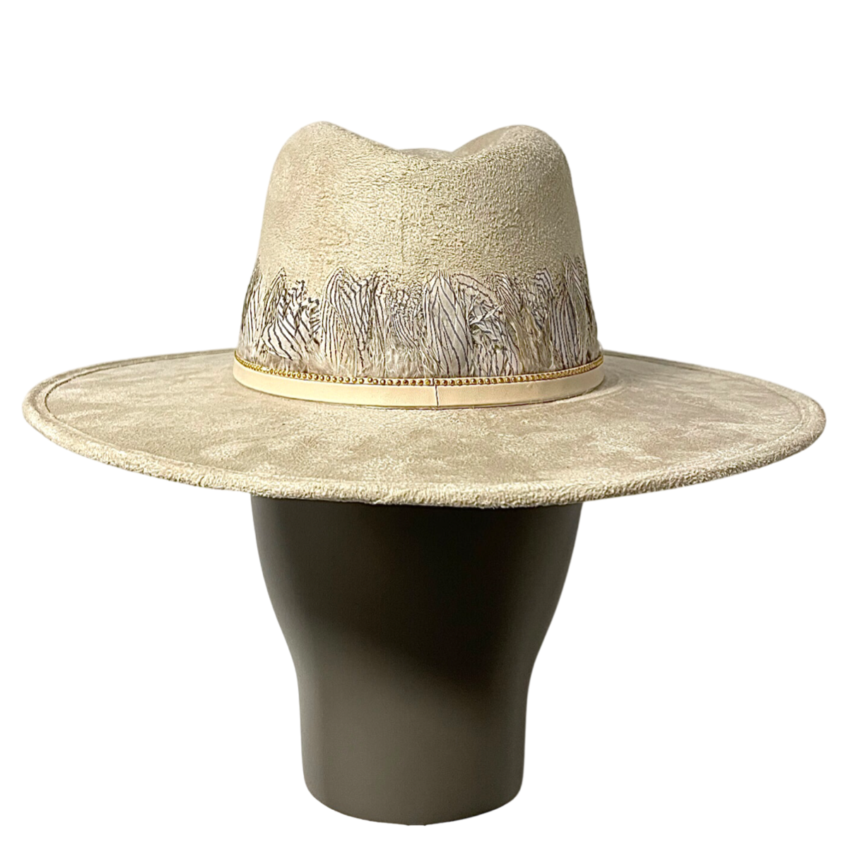 Eleva tu look con nuestro Sombrero Fedora de Ante Beige, un accesorio clásico y sofisticado que irradia elegancia y estilo. Elaborado con ante lujoso, este sombrero ofrece una textura suave y flexible que añade un toque de refinamiento a cualquier conjunto.