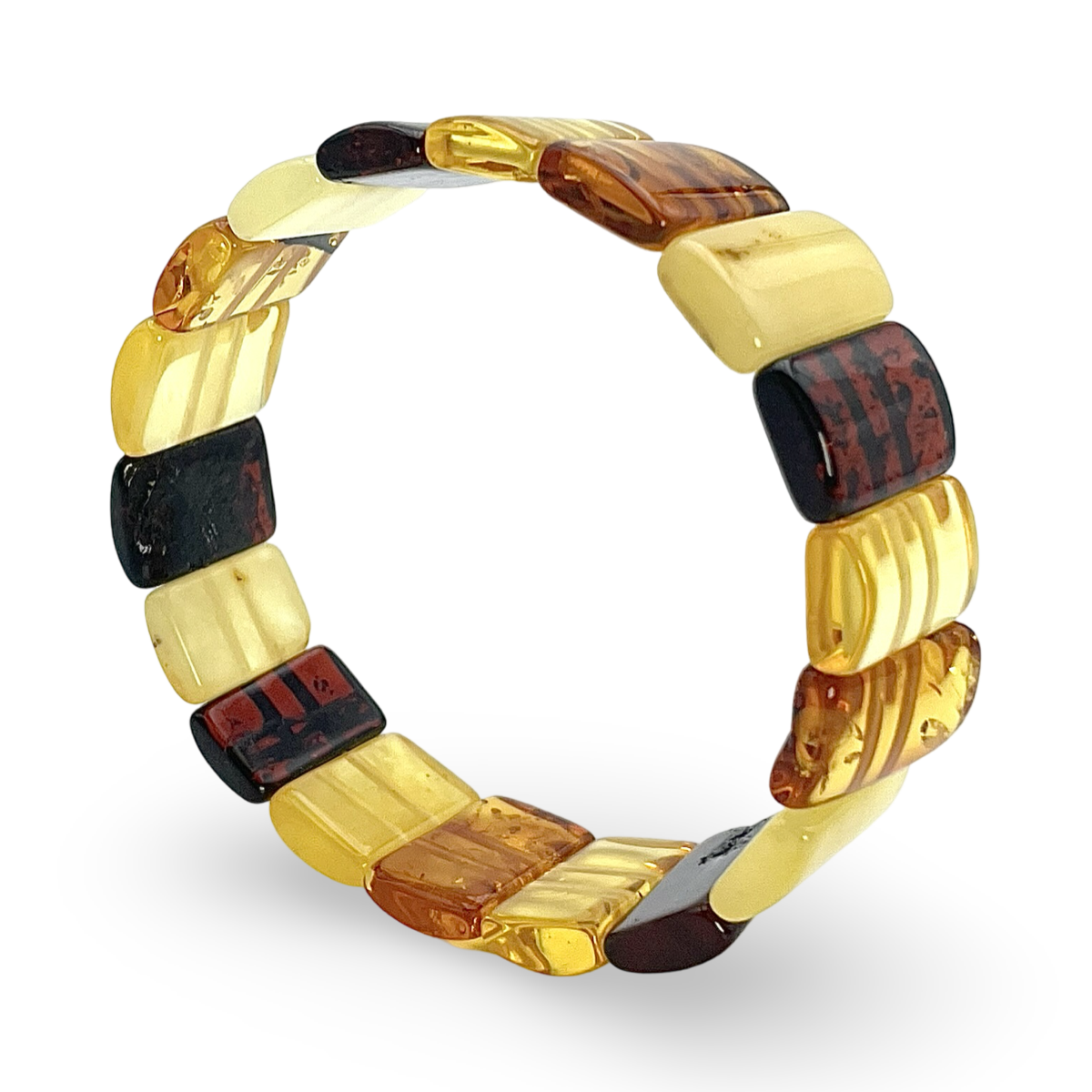 Nuestra Pulsera de Ámbar Macizo Cortada a Mano es una obra maestra de elegancia natural. Cada cuenta está cuidadosamente cortada a mano de ámbar macizo de primera calidad y pulida, resaltando las inclusiones únicas de la piedra y sus ricos tonos cálidos. Las cuentas rectangulares grandes, con sus esquinas suavizadas, ofrecen un diseño táctil y visualmente atractivo que es a la vez sofisticado y cómodo de llevar.