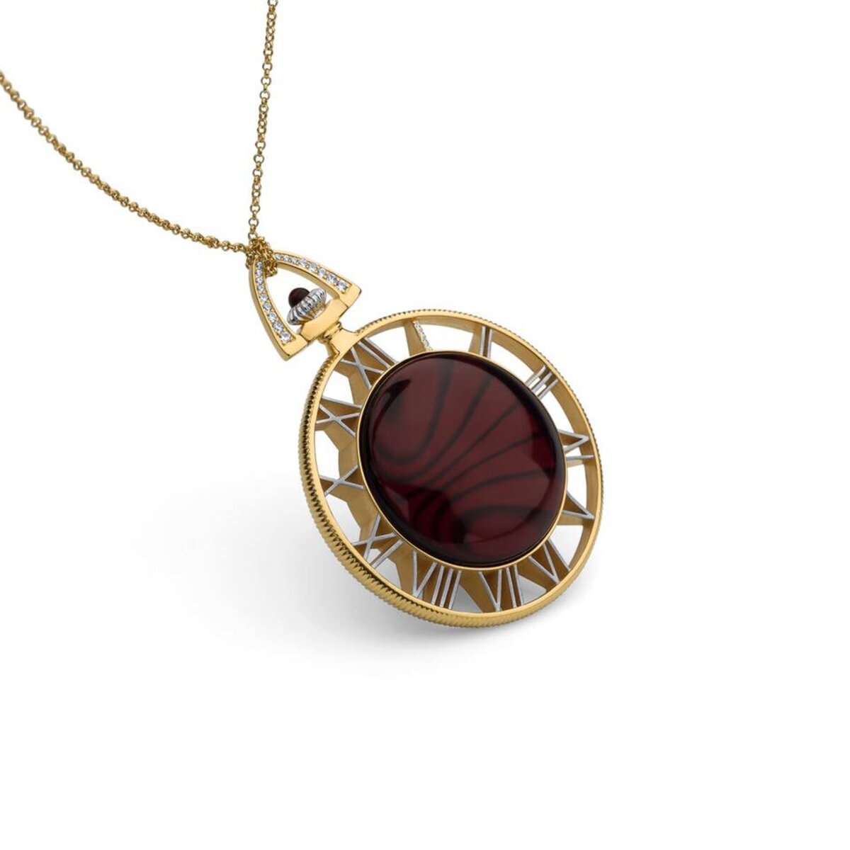 The pendant is decorated of sparkling zircon stones, which add a touch of glamour and sophistication to the piece. The zircon stones are carefully set into the gold-plated 24k case, creating a beautiful and seamless look.