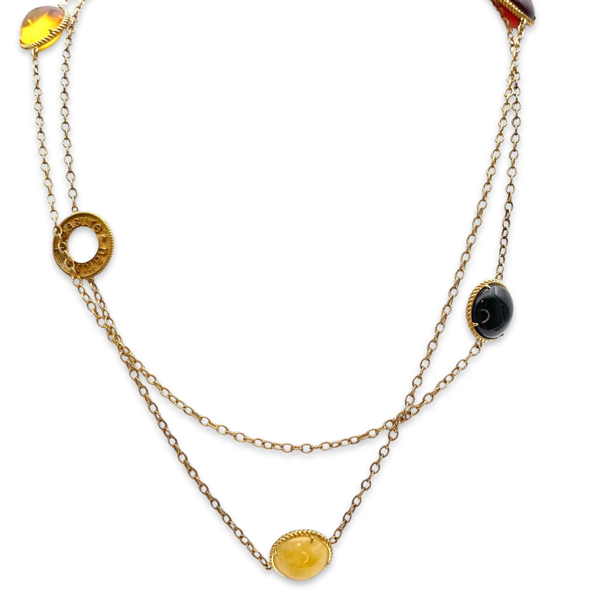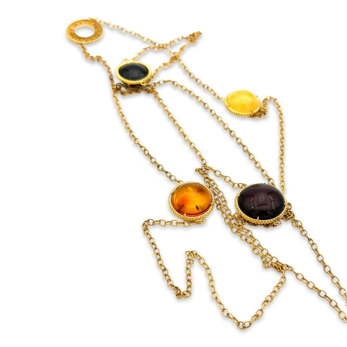 This beautiful necklace features a gold-plated chain adorned with red, yellow, and orange amber stones, creating a warm and striking piece. This versatile necklace is perfect for adding a touch of natural beauty to any outfit, whether dressing up for a special occasion or adding a pop of color to your everyday wardrobe. The combination of the warm tones of the amber and the timeless elegance of the gold plating 24k make this necklace a true statement piece that is sure to be cherished for years to come.