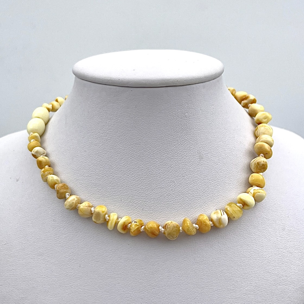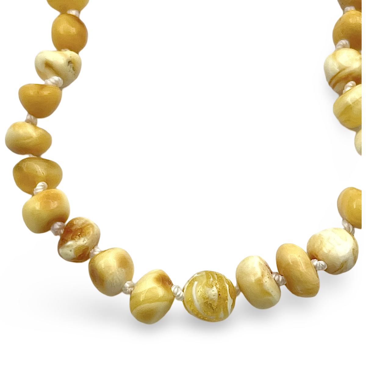 Este encantador Collar de Ámbar para niños es una pieza delicada pero duradera, que muestra cuentas de ámbar báltico natural en un tono cálido similar a la miel. Cada cuenta está anudada individualmente para mayor seguridad, asegurando que si el collar se rompe, solo una cuenta se suelte. El collar se asegura con un cierre confiable diseñado para un uso fácil y mayor seguridad.