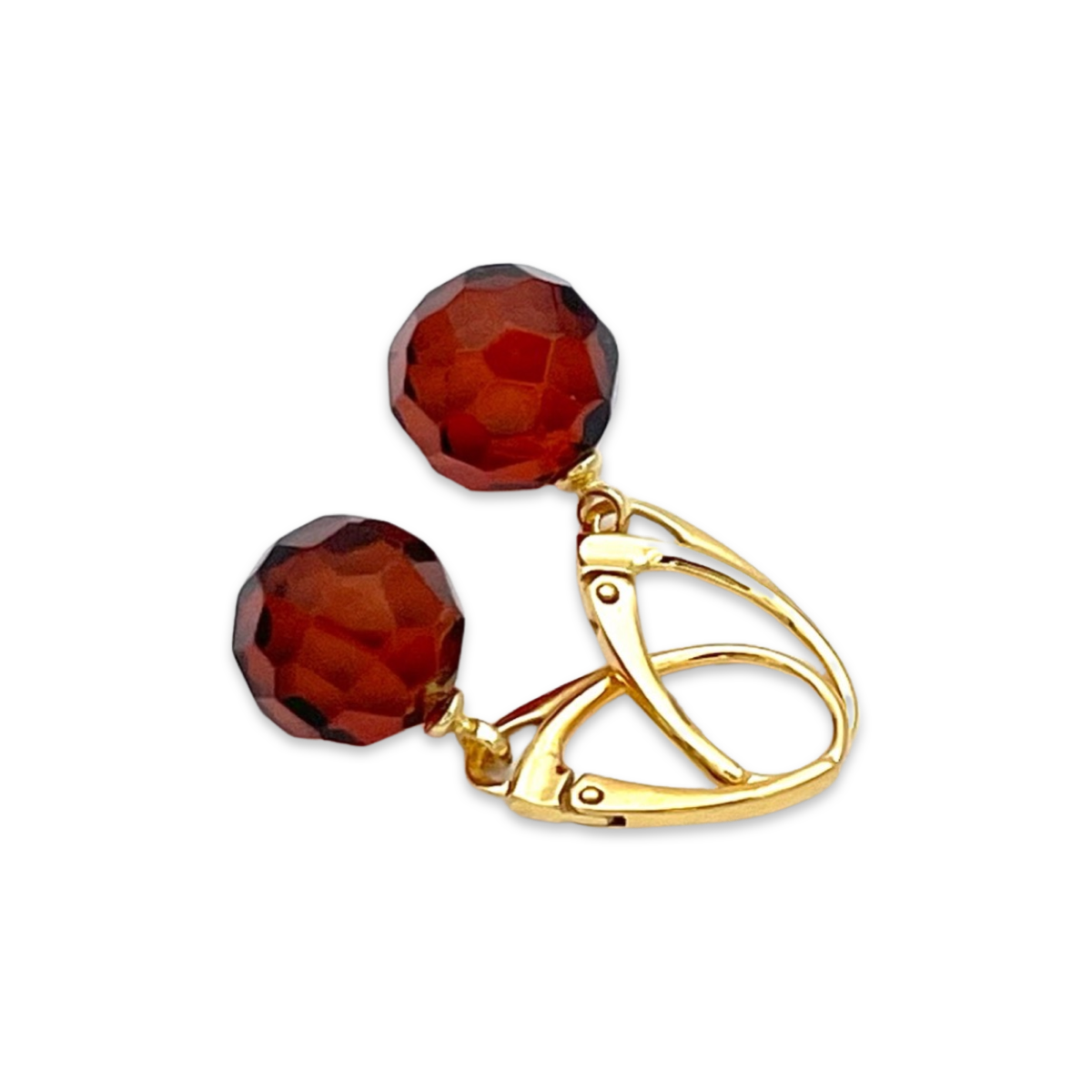 Introducing our gorgeous gilded earrings, featuring a stunning red faceted amber balls. These earrings are perfect for adding a touch of sophistication and glamour to any outfit.Crafted from high-quality materials, these earrings are gold-plated 24k for a luxurious and timeless look. The red faceted amber balls adds a pop of color and sparkle, while the Italian clasp ensures a secure and comfortable fit.These earrings are perfect for both formal and casual occasions, making them a versatile addition to any jewelry collection. Whether you're dressing up for a night out or just adding some flair to your everyday look, these earrings are sure to turn heads and draw compliments.Order your own gilded earrings with faceted amber balls today and elevate your style to the next level!