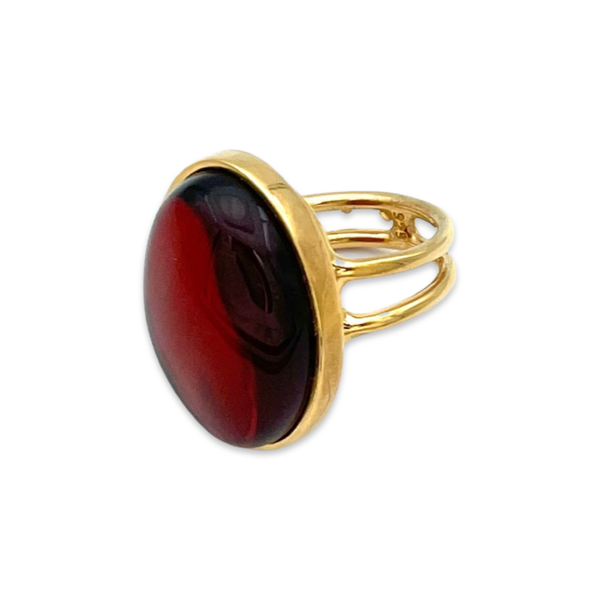 This beautiful gold-plated ring features a large red amber cabochon that is sure to make a statement. The warm, rich color of the amber is complemented perfectly by the luxurious gold plating 24k, creating an eye-catching and elegant look. The ring is adjustable in size, making it a versatile accessory that can be worn on any finger. It's perfect for adding a touch of sophistication to any outfit, whether you're dressing up for a special occasion or simply want to add some glamour to your everyday look. This amber ring is a timeless piece that will make a beautiful addition to any jewelry collection.