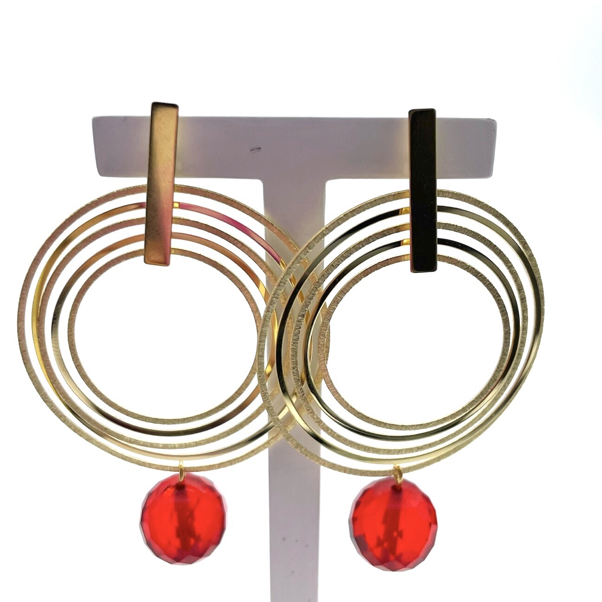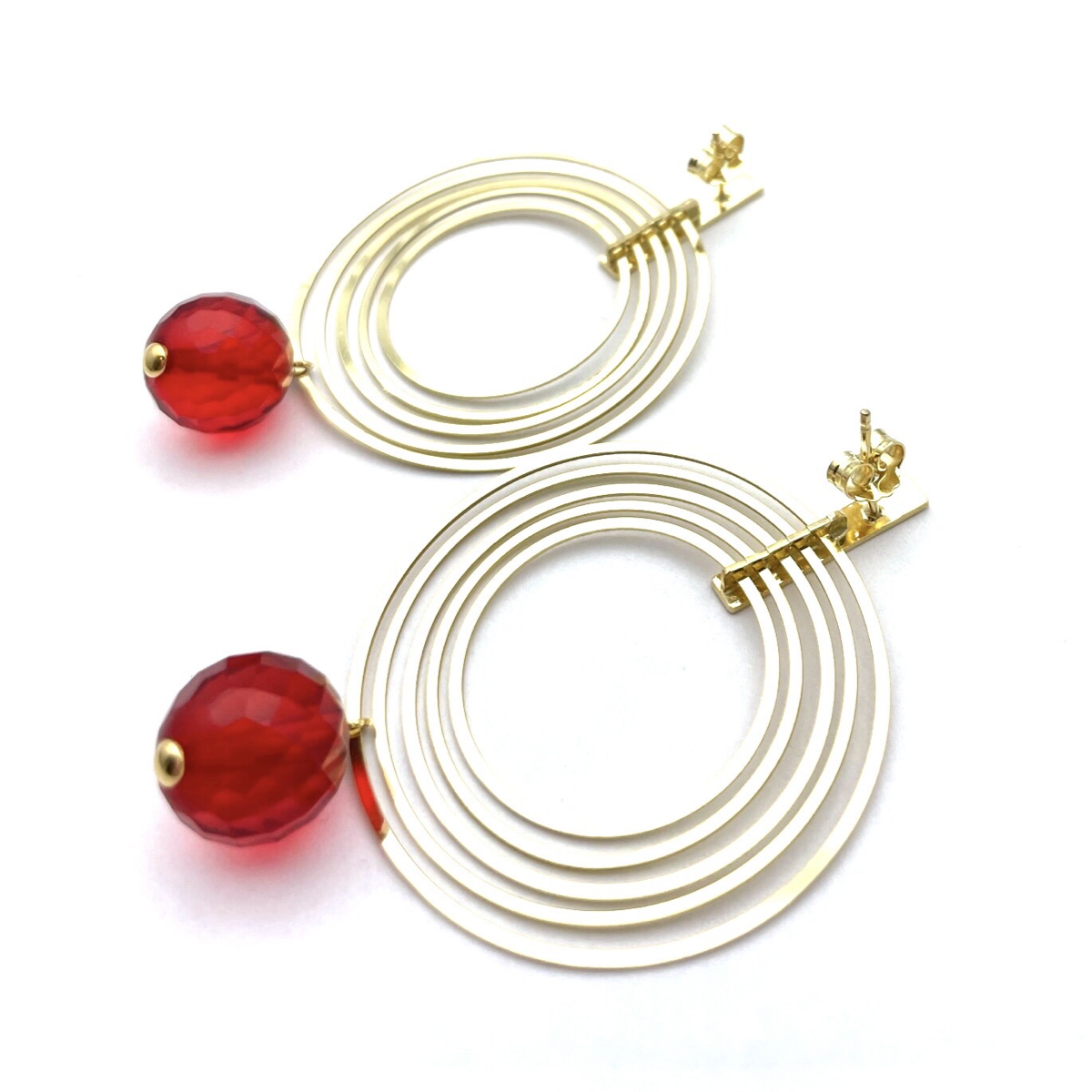 Estos pendientes de botón chapados en oro presentan bolas de ámbar facetadas rojas que añaden un toque de elegancia y sofisticación a cualquier atuendo. El ámbar es una resina fosilizada que ha sido valorada por su belleza natural y durabilidad durante siglos. Las bolas facetadas rojas utilizadas en estos pendientes captan la luz de manera hermosa y brillan con cada movimiento. Los pendientes se aseguran con un poste y cierre chapados en oro, lo que garantiza que se mantengan en su lugar durante todo el día. El chapado en oro de 24k añade un toque de lujo a los pendientes y complementa el color intenso del ámbar. Estos pendientes son perfectos tanto para ocasiones casuales como formales y pueden combinarse con una variedad de atuendos. Ya sea que te estés arreglando para una noche fuera o quieras añadir un toque de glamour a tu look diario, estos pendientes de ámbar chapados en oro son una elección impresionante.