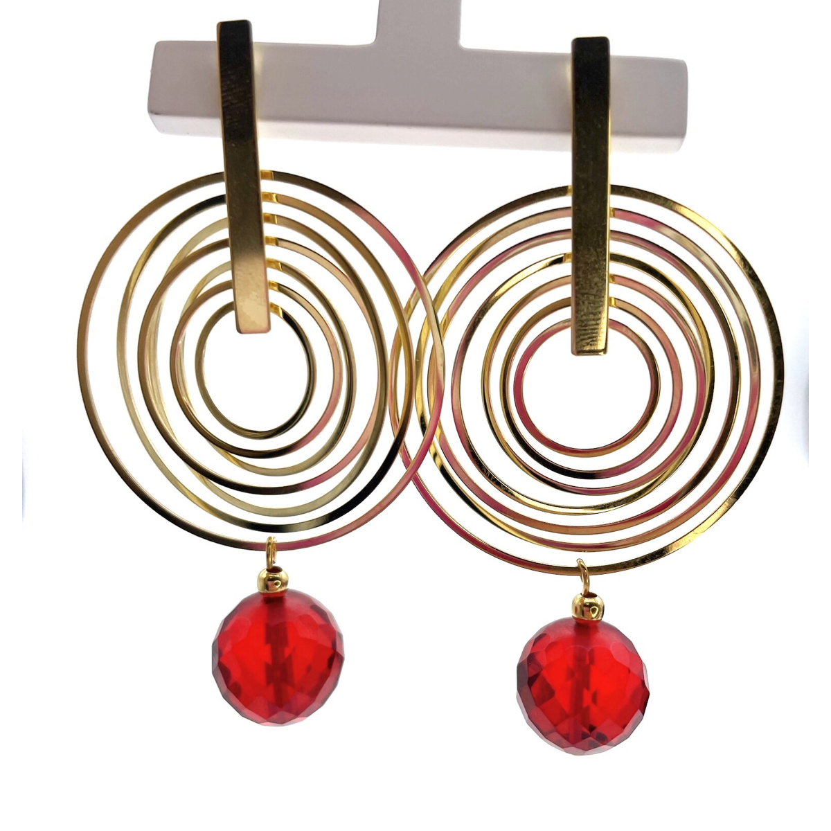 Estos pendientes de botón chapados en oro presentan bolas de ámbar facetadas en rojo que añaden un toque de elegancia y sofisticación a cualquier atuendo. El ámbar es una resina fosilizada que ha sido valorada por su belleza natural y durabilidad durante siglos. Las bolas facetadas rojas utilizadas en estos pendientes captan la luz de manera hermosa y brillan con cada movimiento. Los pendientes se aseguran con un poste y cierre chapados en oro, lo que garantiza que se mantengan en su lugar durante todo el día. El chapado en oro de 24k añade un toque de lujo a los pendientes y complementa el rico color del ámbar. Estos pendientes son perfectos tanto para ocasiones casuales como formales y pueden usarse con una variedad de atuendos. Ya sea que te estés arreglando para una noche fuera o quieras añadir un toque de glamour a tu look diario, estos pendientes de ámbar chapados en oro son una elección impresionante.