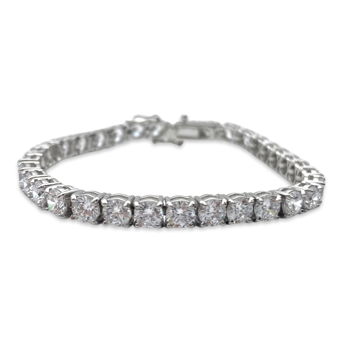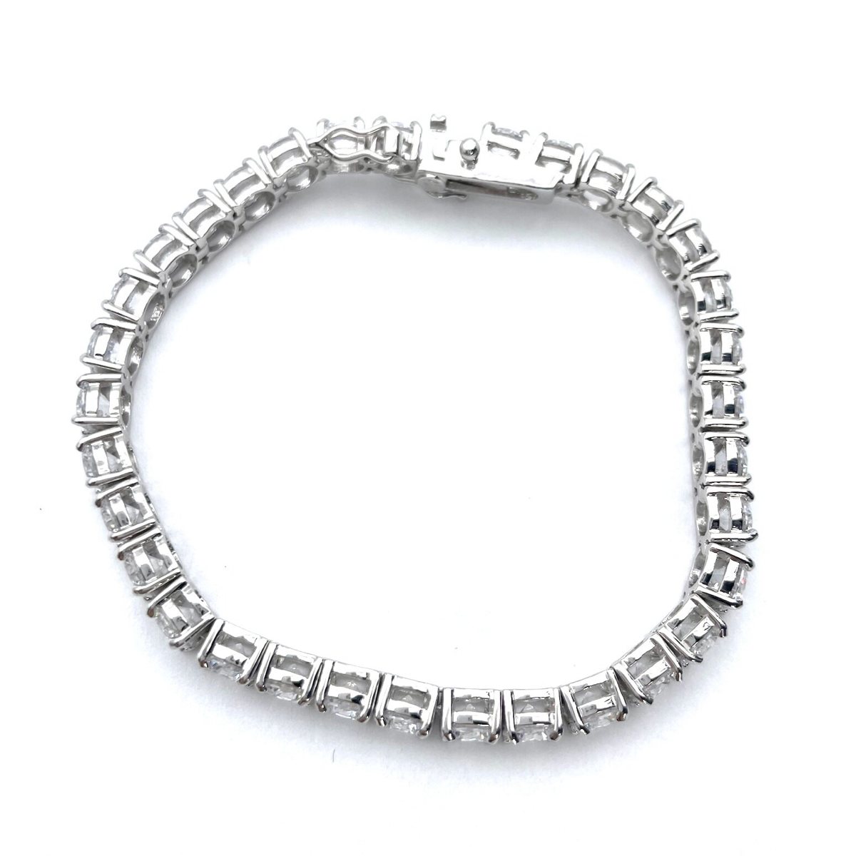 La Pulsera Imitación Royal Diamond Tennis de Plata es un testimonio de la artesanía exquisita y el estilo atemporal. Cuenta con circonitas cúbicas de alta calidad que se asemejan mucho a los diamantes reales, cuidadosamente engastadas en una montura de plata de ley. El diseño de la pulsera muestra una línea continua de piedras brillantes, emulando el aspecto de una auténtica pulsera de tenis con diamantes. El término "pulsera de tenis" se originó a partir de un famoso incidente cuando la tenista Chris Evert perdió su pulsera de diamantes durante un partido e insistió en pausar el juego hasta que la encontraran. Desde entonces, dichas pulseras con una línea de pequeñas gemas deslumbrantes se conocen como pulseras de tenis. Las circonitas cúbicas utilizadas en esta pulsera de imitación son seleccionadas por su brillo y fuego, creando un destello que imita la belleza de los diamantes reales. La montura de plata complementa las piedras, añadiendo un toque de sofisticación y lujo a la pieza. La pulsera está diseñada para ser cómoda y segura, con un cierre que asegura que se mantenga en su lugar en la muñeca. Es adecuada para diversas ocasiones, desde eventos formales hasta el uso diario, y puede combinarse con una amplia variedad de atuendos. La Pulsera Imitación Royal Diamond Tennis de Plata te permite disfrutar del aspecto y la sensación de una pieza de joyería real sin el costo de los diamantes genuinos. Es un accesorio hermoso que irradia elegancia y puede ser una adición apreciada a tu colección de joyas o un regalo considerado para un ser querido que valore el estilo clásico y el brillo.
