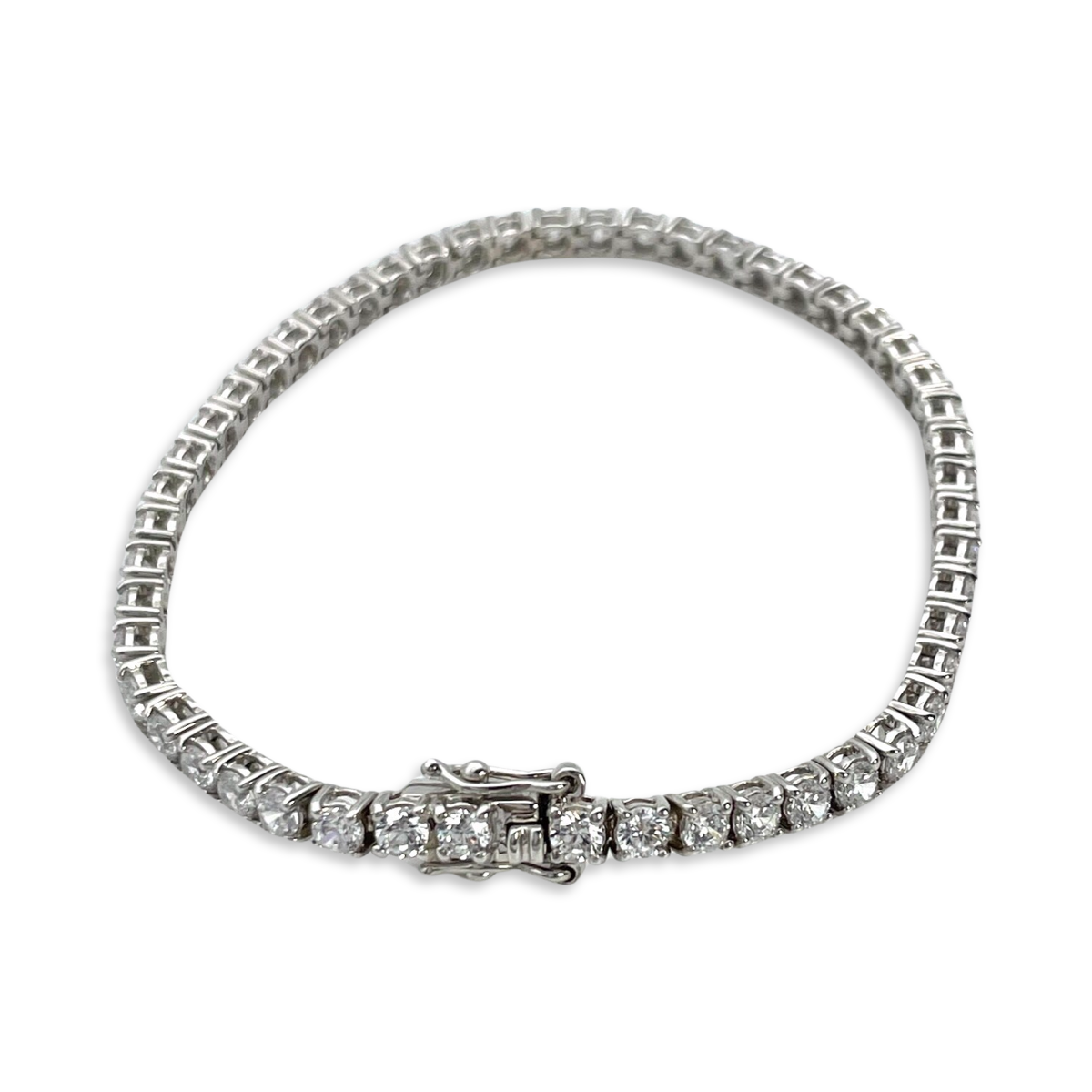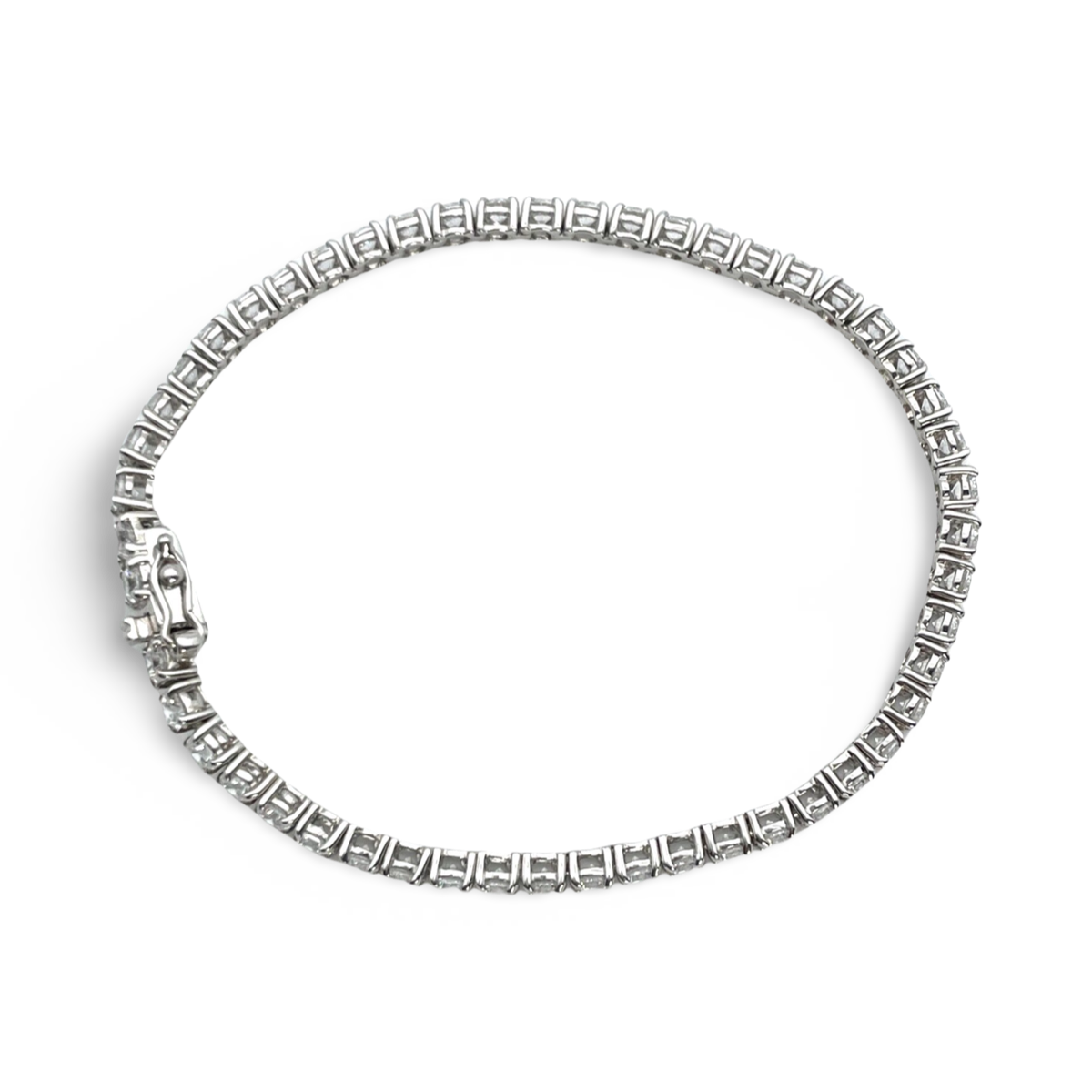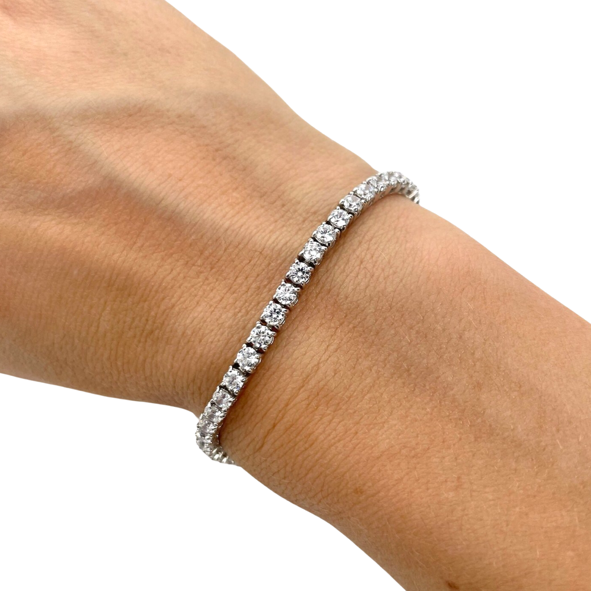 La Pulsera Imitación Royal Diamond Tennis de Plata es un testimonio de la artesanía exquisita y el estilo atemporal. Cuenta con circonias cúbicas de alta calidad que se asemejan mucho a los diamantes reales, cuidadosamente engastadas en un marco de plata de ley. El diseño de la pulsera muestra una línea continua de piedras brillantes, emulando el aspecto de una auténtica pulsera de tenis con diamantes. El término "pulsera de tenis" se originó a partir de un incidente famoso cuando la tenista Chris Evert perdió su pulsera de diamantes durante un partido e insistió en pausar el juego hasta que fue encontrada. Desde entonces, estas pulseras con una línea de pequeñas gemas deslumbrantes se conocen como pulseras de tenis. Las circonias cúbicas utilizadas en esta pulsera imitación son seleccionadas por su brillo y fuego, creando un destello que imita la belleza de los diamantes reales. El engaste de plata complementa las piedras, añadiendo un toque de sofisticación y lujo a la pieza. La pulsera está diseñada para ser cómoda y segura, con un cierre que asegura que permanezca en su lugar en la muñeca. Es adecuada para diversas ocasiones, desde eventos formales hasta el uso diario, y puede combinarse con una amplia variedad de atuendos. La Pulsera Imitación Royal Diamond Tennis de Plata te permite disfrutar del aspecto y la sensación de una pieza de joyería real sin el costo de los diamantes genuinos. Es un accesorio hermoso que irradia elegancia y puede ser una adición apreciada a tu colección de joyas o un regalo considerado para un ser querido que valore el estilo clásico y el brillo.