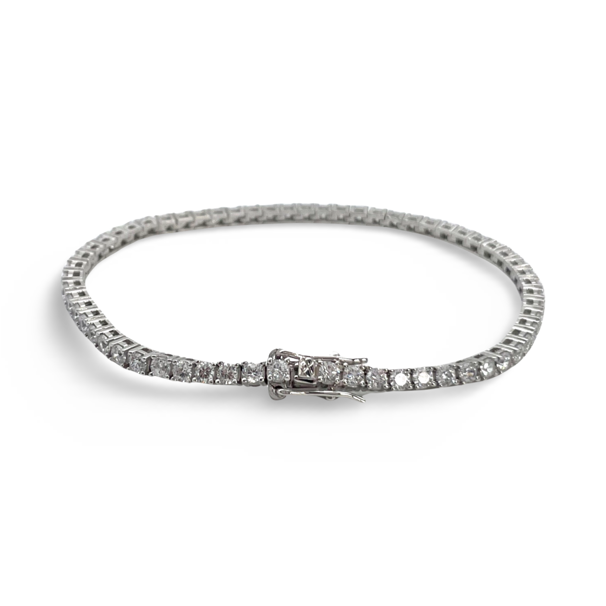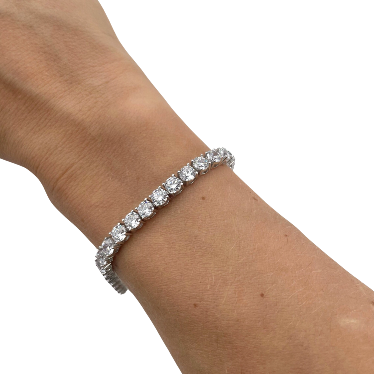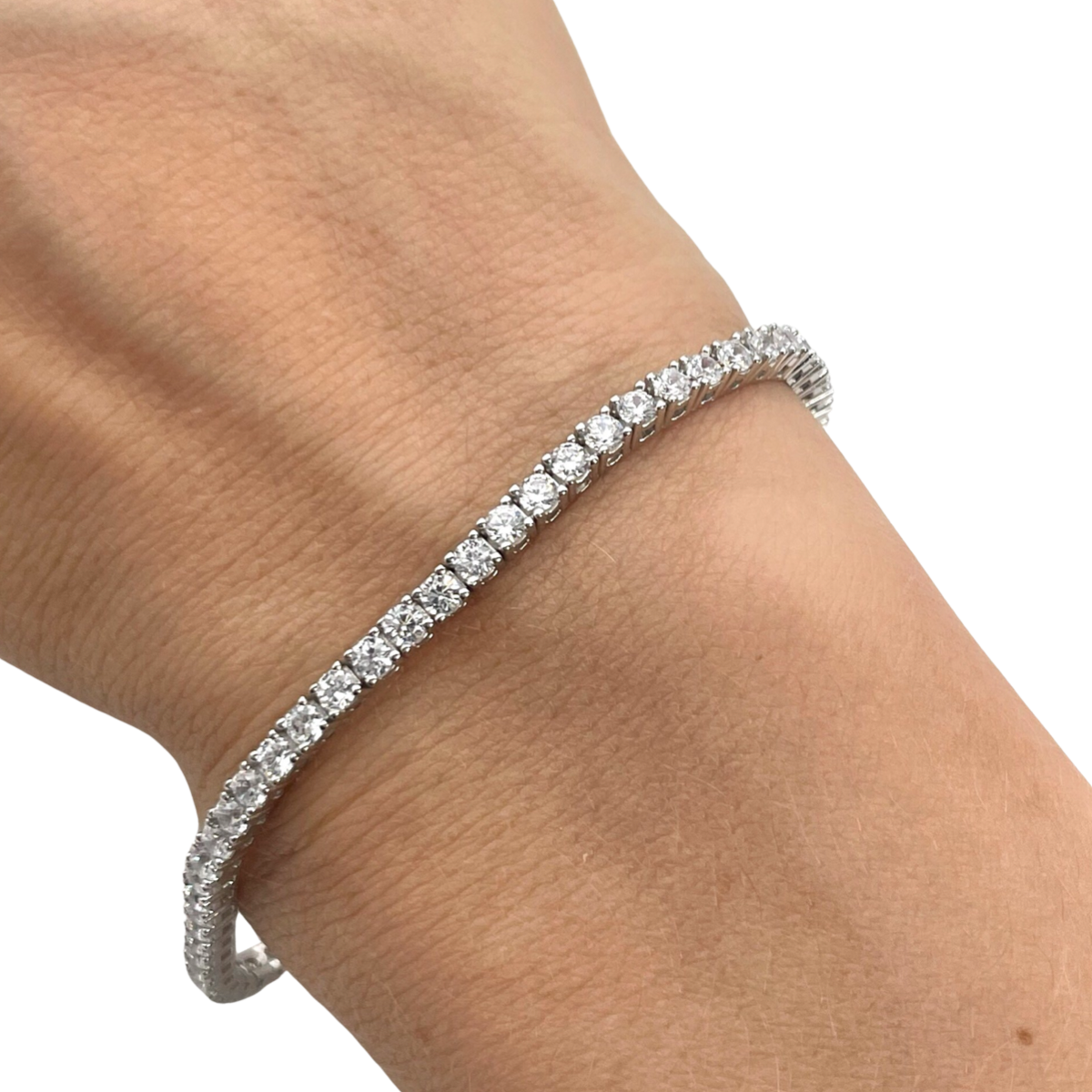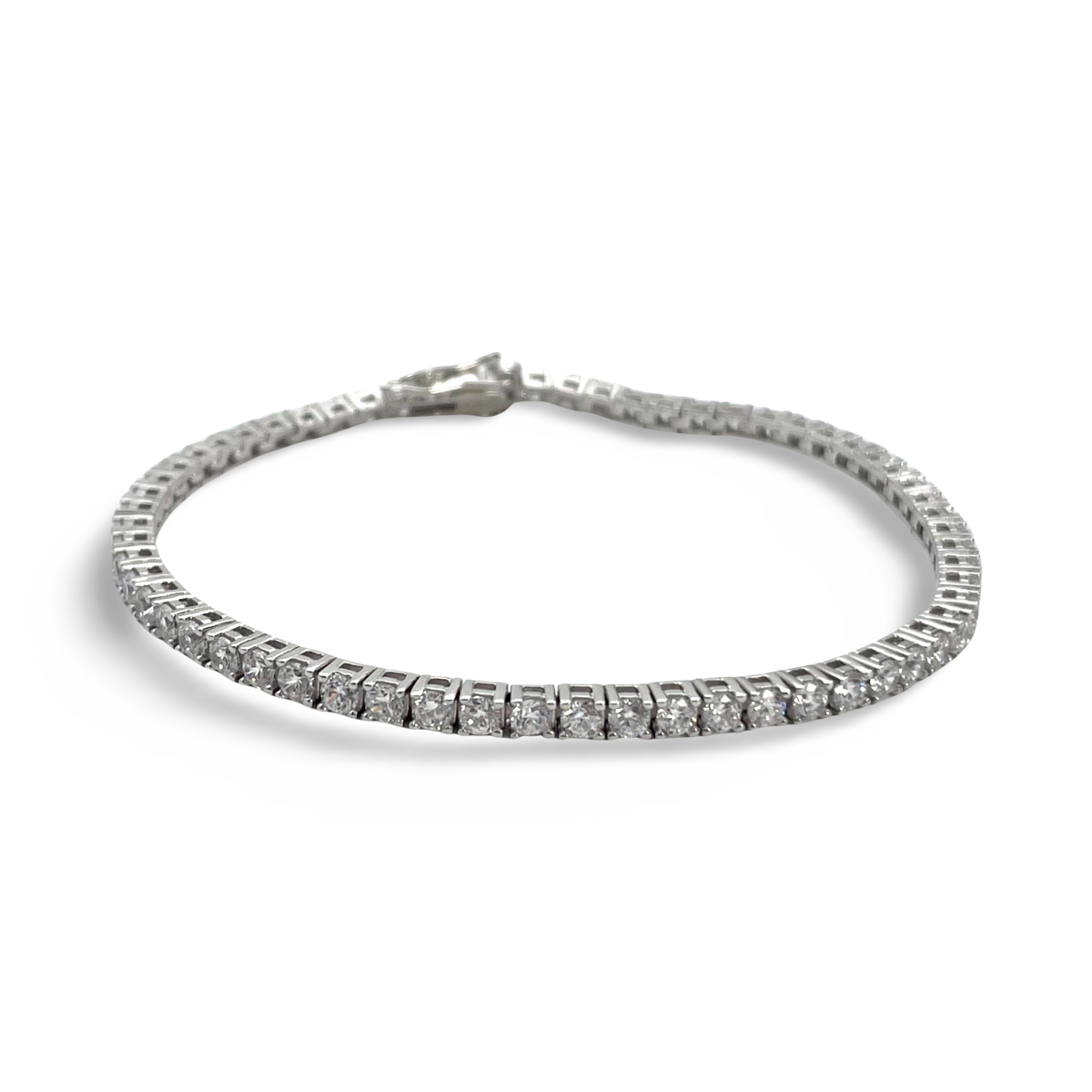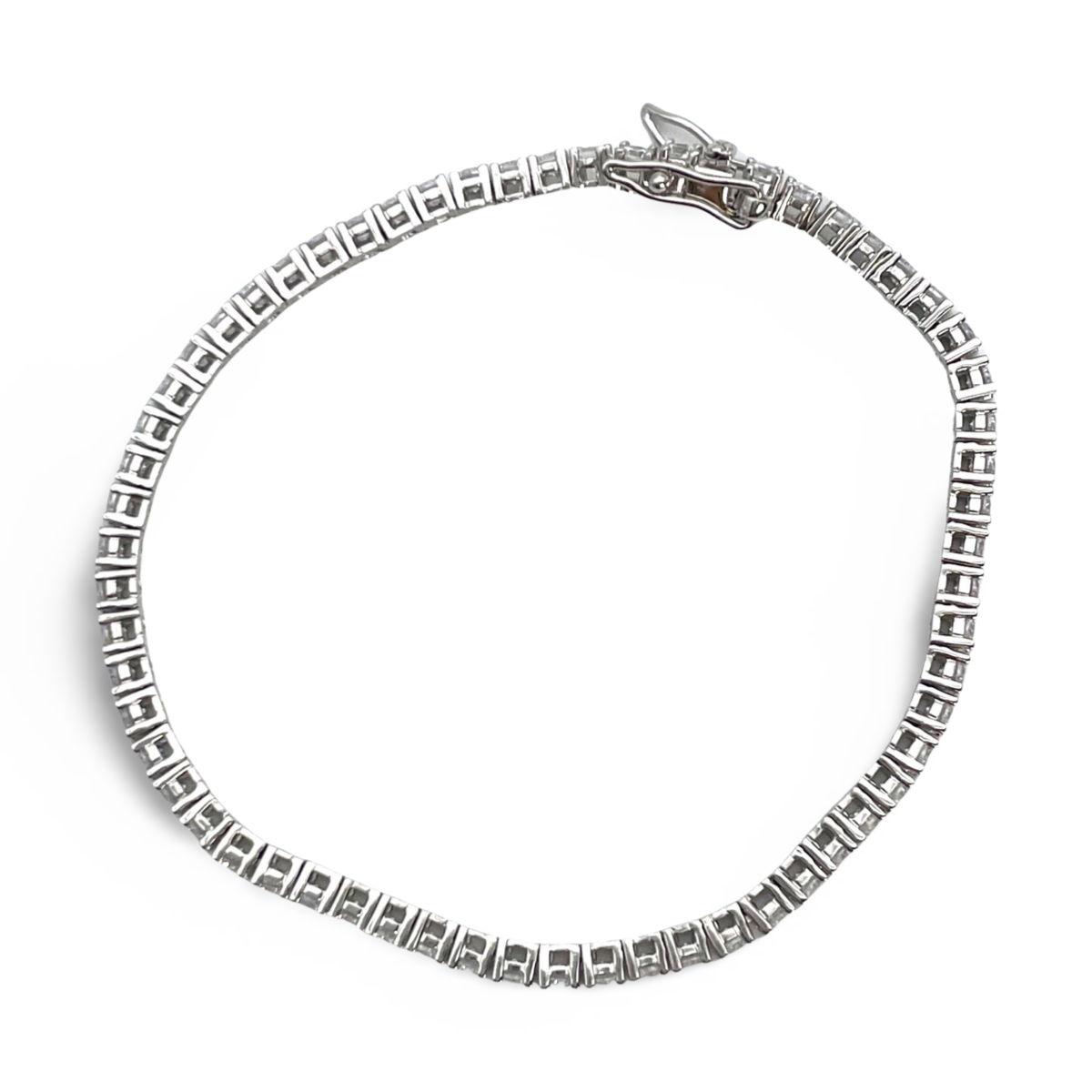 Las circonitas cúbicas utilizadas en esta pulsera imitación son seleccionadas por su brillo y fuego, creando un destello que imita la belleza de los diamantes reales. La montura de plata complementa las piedras, añadiendo un toque de sofisticación y lujo a la pieza.