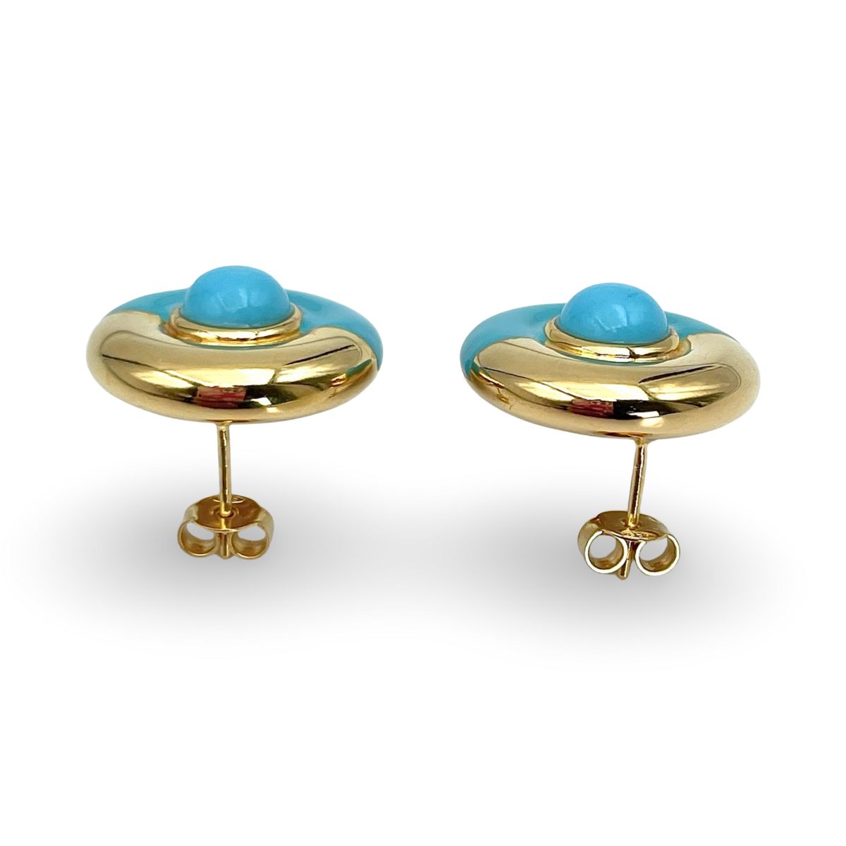 Eleva tu estilo con estos impresionantes Pendientes de Turquesa y Plata Dorada. Combinando la belleza natural de la turquesa con el brillo lujoso de la plata de ley dorada, estos pendientes irradian elegancia y un encanto atemporal.