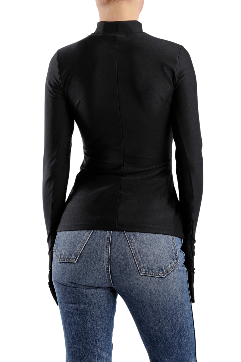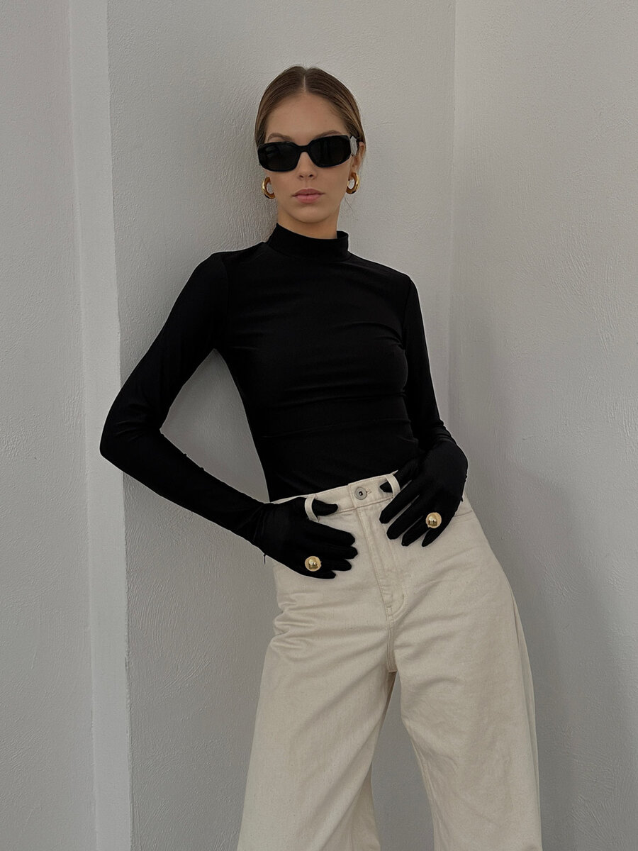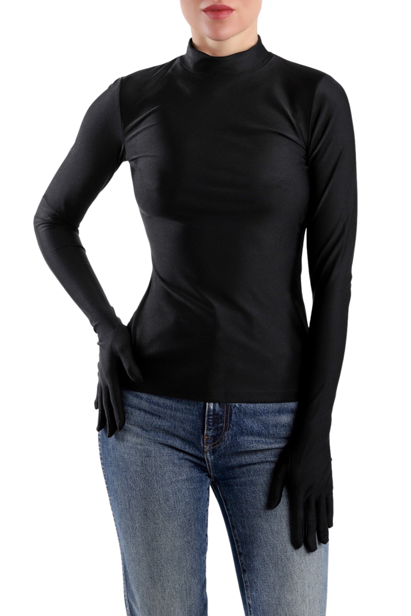 This stylish top with glove is the perfect addition to any fashion-forward wardrobe. The top is made from high-quality materials and features a unique design with long sleeve gloves on one side.