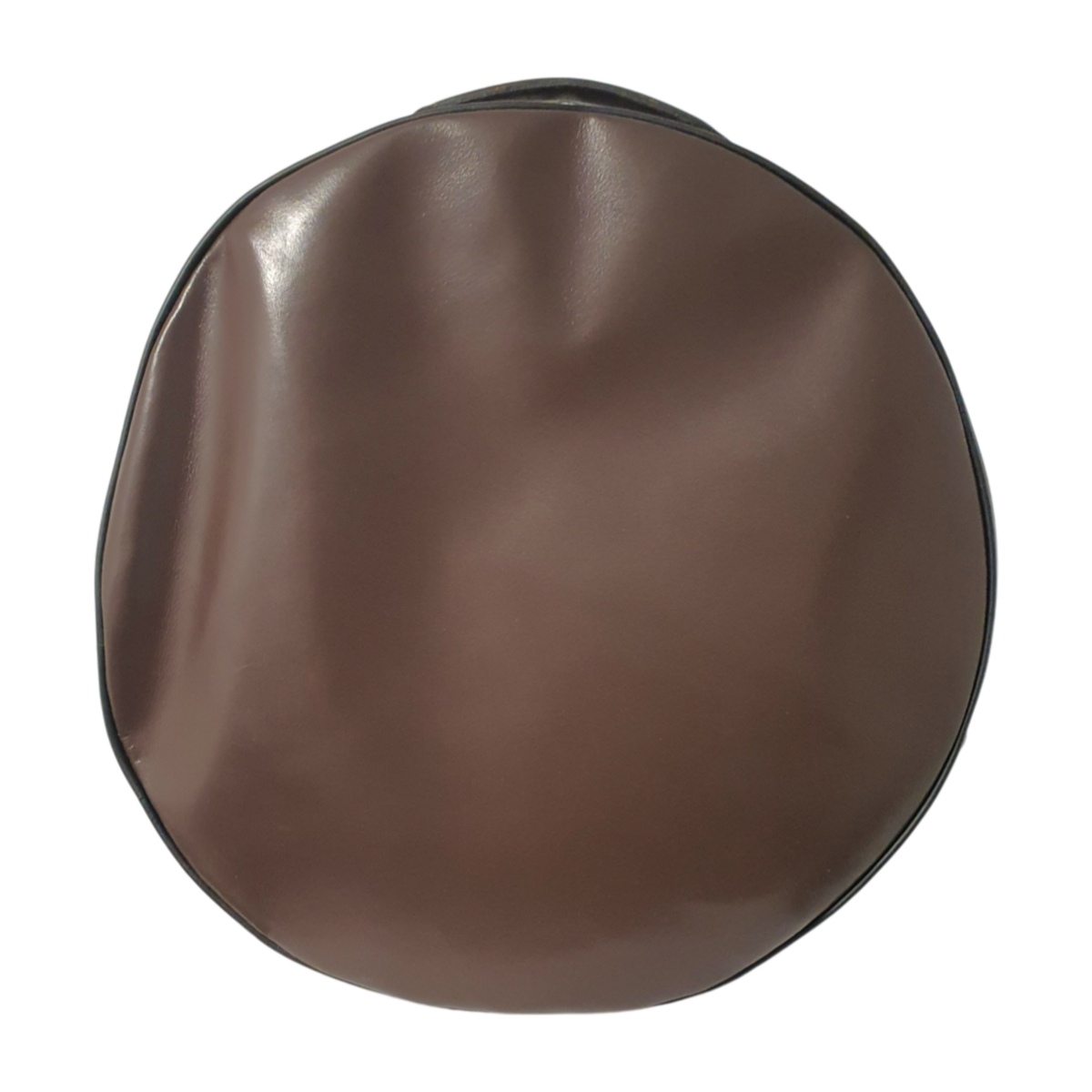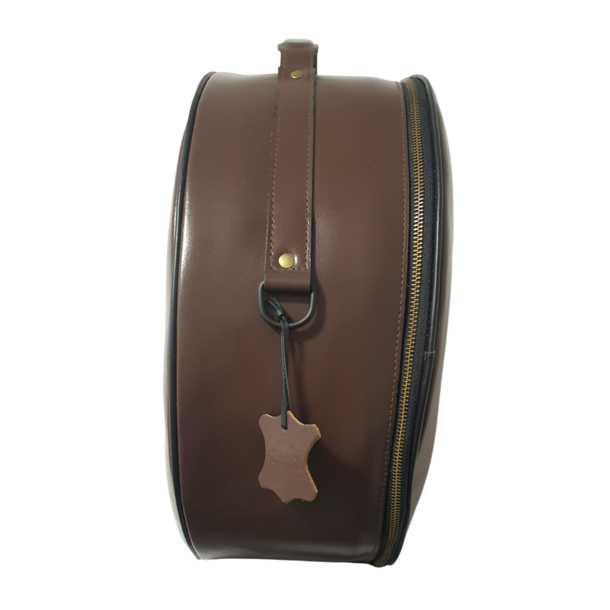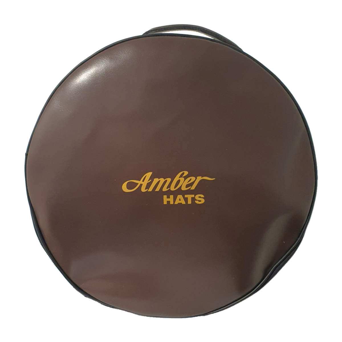 Présentation du sac à chapeaux en cuir d'agneau marron «Amber Hats», un accessoire luxueux et élégant conçu pour protéger et transporter vos chapeaux avec la plus grande sophistication.