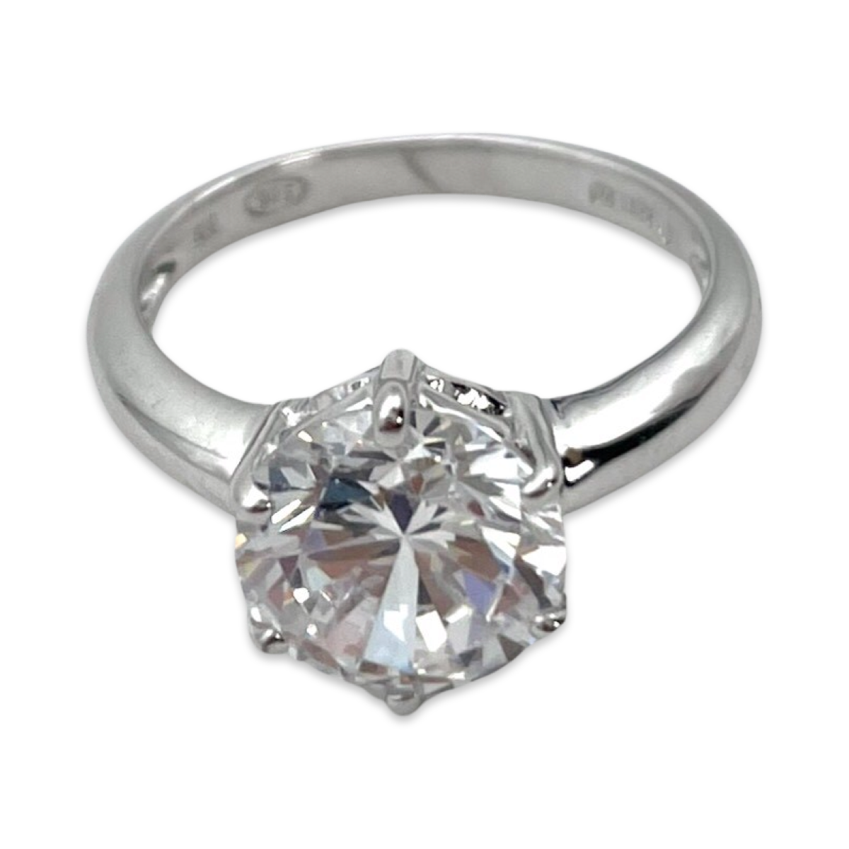 La simplicité et l'élégance du zirconium taillé en rond dans un sertissage en argent font de cette bague un choix polyvalent qui s'accorde bien avec diverses alliances et autres pièces de bijoux. Elle est conçue pour être confortable à porter au quotidien tout en conservant son charme intemporel.