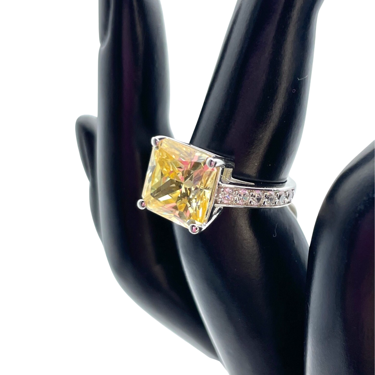 Parfaite pour les occasions formelles comme pour un usage quotidien, cette bague est une pièce maîtresse qui ajoute sans effort une touche de couleur et de sophistication à toute tenue. Elle constitue également un merveilleux cadeau pour une personne spéciale, symbolisant la joie et l'énergie positive avec son centre en zircon jaune vibrant.